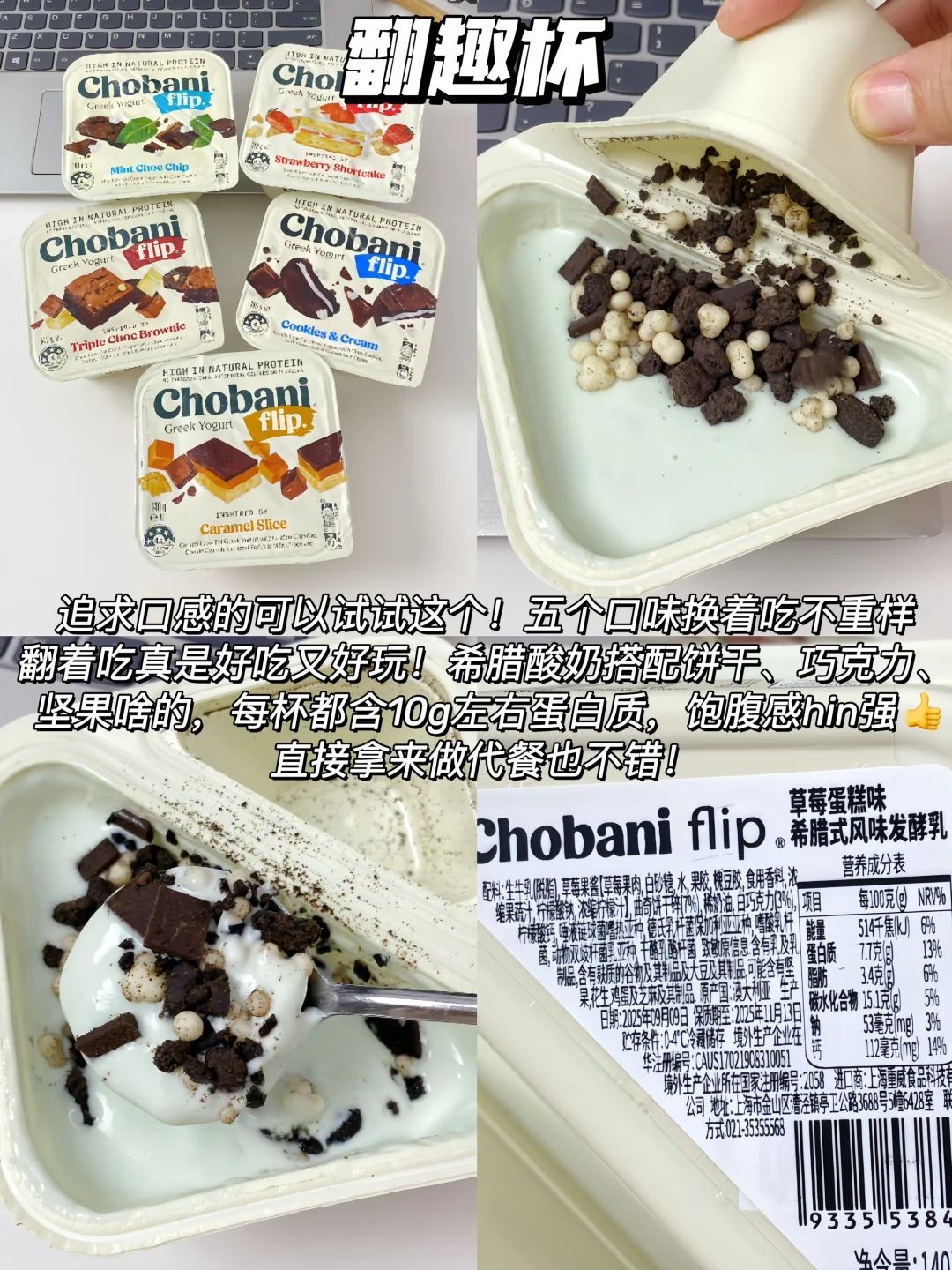 希腊酸奶搭配饼干、巧克力、坚果,每杯约10g蛋白质,饱腹感hin强👍直接拿来代餐也不错!