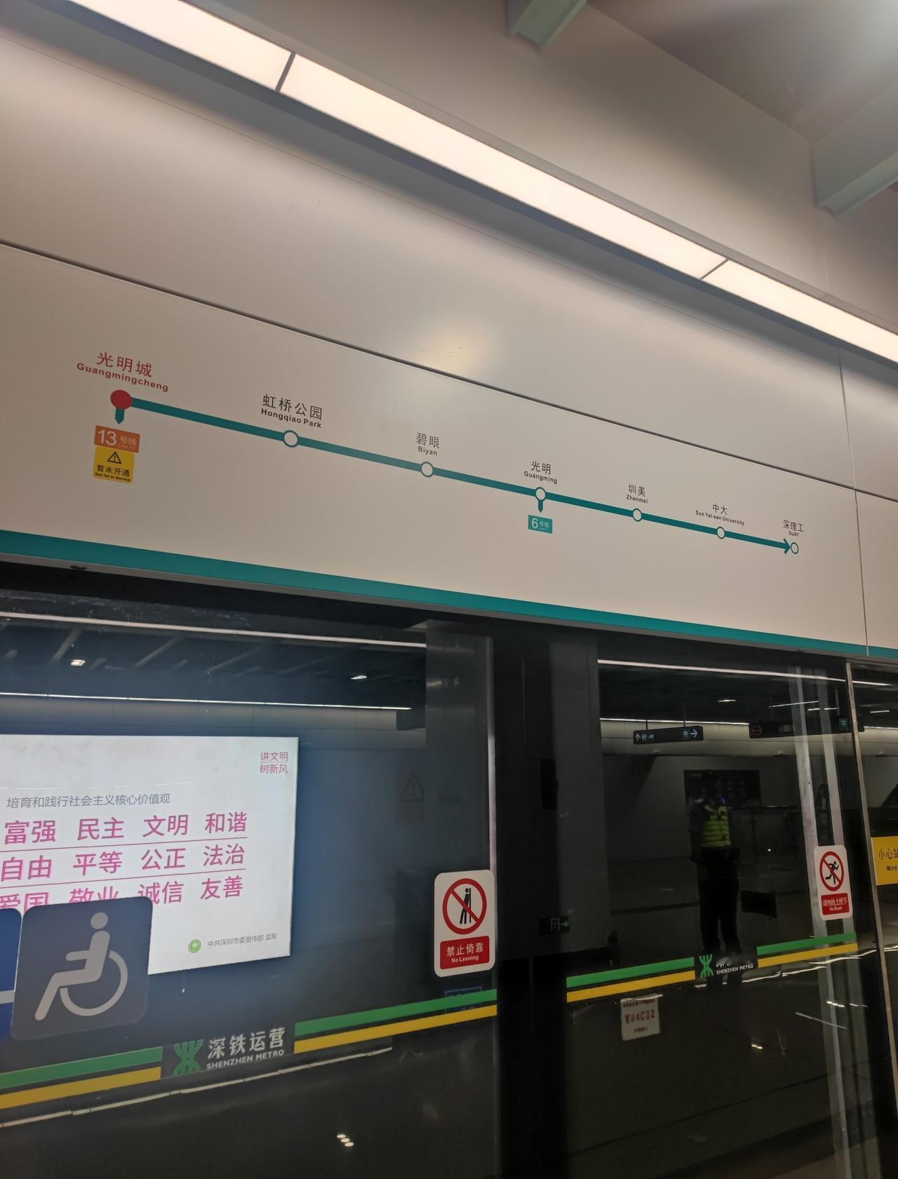 从光明城下了高铁,突然发现6号线支线二期开通了!真的是一个惊喜! 从深理工到光明城终于全线贯通,光明城和和地铁网络联通了,这真的是光明人的福音! 新增加的线路主要是: 光明——碧眼——虹桥公园——光明城 以后来虹桥公园和光明城都方便了!去吃新湖烧鸡也方便啦!
