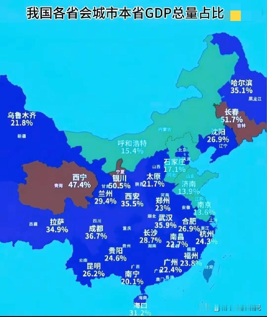 各省会城市经济占比水平情况,四川省会城市成都经济占全省经济的比达到了36.7%,而湖北省会城市武汉经济占全省经济的比例为35.9%,可见成都经济占比还是要比武汉经济占比更高一些。