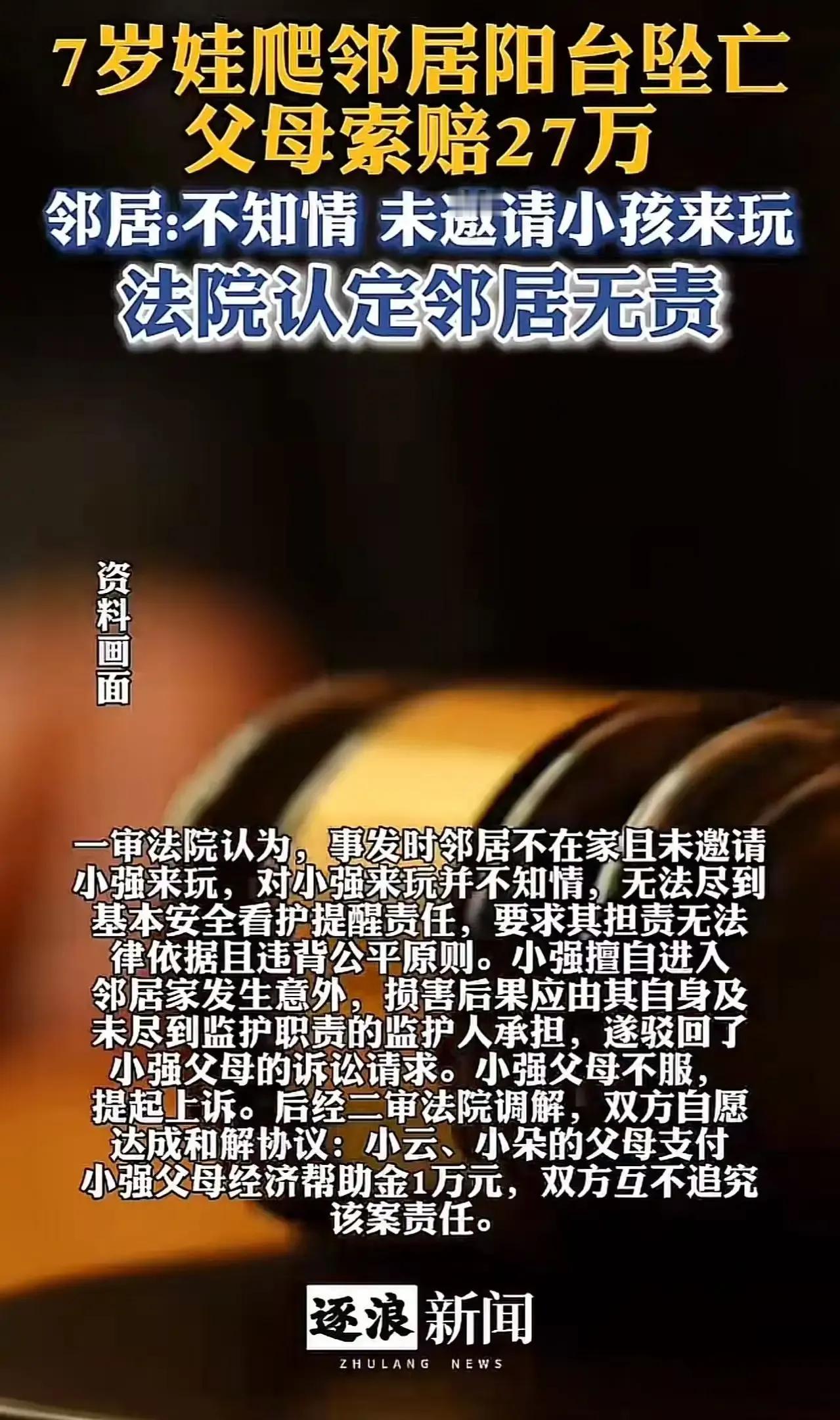 “这次法院判决给力!”梧州市icon,7岁孩童放学后私自去邻居家玩耍,不幸从阳台坠楼身亡,父母悲痛之下将邻居诉至法院索赔27万。邻居大喊冤枉:“你自己没看好孩子,凭什么要我赔偿,我还觉得晦气呢?”而法院的判决来,让孩童父母傻眼! 然而,令人唏嘘的是,判决结果似乎让人深思:在这个社会,责任的界限到底在哪里?我们常常期待法律能为受害者撑起一把伞,但当它伸向邻里关系、家庭教育甚至每一个家庭的生活细节时,许多人会开始质疑:这是不是过度保护?还是对每一个生命的尽责? 故事的核心不只是一起意外事故,更折射出我们对“责任”与“爱”的认知差异。父母们在悲痛中,将邻居推上了被告席,似乎希望借法律之手,给失去的孩子一个交代。而邻居的反应,也暴露出一份无奈:责任难道可以仅仅靠赔偿来弥补?难道我们每个人都要为他人的孩子守门? 其实,这背后隐藏的是一种集体焦虑——对孩子安全的担忧、对邻里关系的担心、甚至对现代社会责任感的迷失。我们都在渴望一个更有安全感、更有温度的社会,却常常在现实中被责任的重担压得喘不过气来。 法律的判决或许在某种程度上给出了答案:每个人都应对自己的行为负责,但同时也提醒我们,责任不仅仅是金钱的衡量,更是心中的那份守护与爱。我们不能让“赔偿”成为解决一切的万能药,也不能让“责任”变成冷漠的借口。 从这个案件中,我们能看到的,是一个社会在逐步成熟的迹象——在强调法律责任的同时,更应该提倡家庭、学校和社会共同担负起保护下一代的责任。每个家庭都应成为孩子的第一道防线,每个邻里都应成为彼此的守望者,而不是事后追责的炮灰。 最终,我们希望的,是在悲剧中找到警醒,唤起每个家庭对孩子的呵护,也让每个人都明白:责任,从来不是单方面的“赔偿”,而是心与心之间的关怀。让我们共同努力,营造一个更安全、更温暖的社会,让悲剧不再重演,让每一个孩子都能在阳光下自由奔跑。 因为,正如一句话所说:“真正的责任,是用心守护每一个生命的美好。”这才是我们这个时代最值得期待的正能量。坠楼小男孩