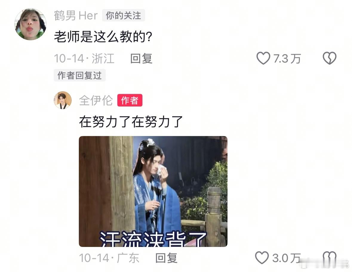 鹤男回关全伊伦《入青云》沐天玑和言笑的虐恋看得人揪心,没想到剧外鹤男、全伊伦这么甜!回关互动超默契,还卡点13:14发彼此照片,细节里全是浪漫,CP粉狂喜。 ​​​