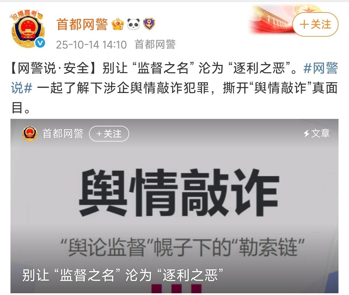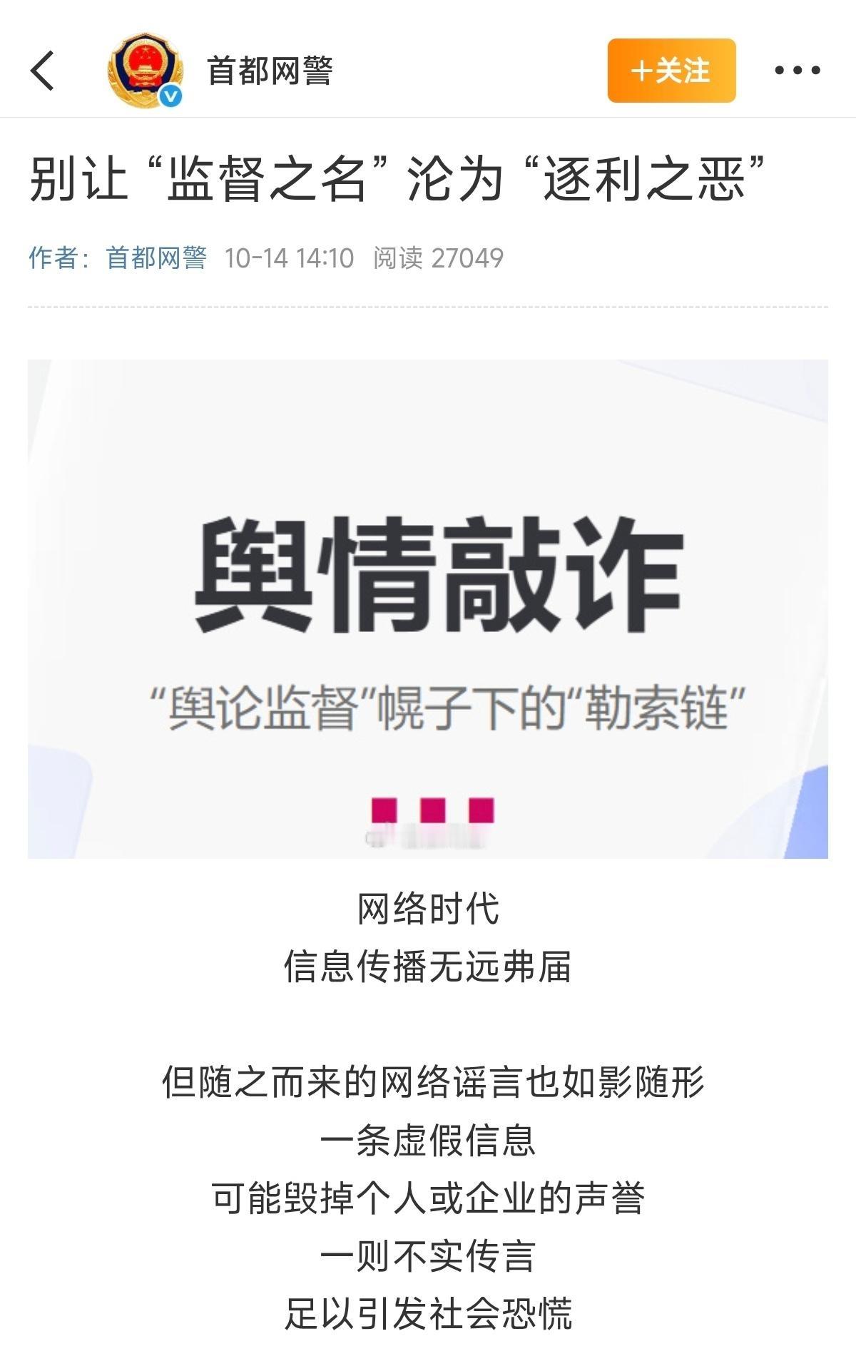 首都网警:《别让“监督之名”沦为“逐利之恶”》