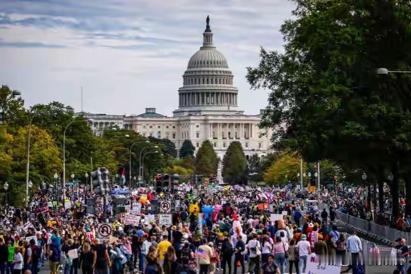 美好的一天从看美国暴乱开始 700万美国人街头喊“不要国王” 特朗普看了连夜问:这届美国人咋不爱我了? 2025年10月18日的美国,那场面堪比超级碗现场——700万美国人涌上街头,举着“不要国王”的大旗,把特朗普的“总统牌面”拆得稀碎。 从华盛顿的国会山脚下到纽约时代广场的大屏前,从波士顿公园的枫叶堆里到芝加哥的公园草坪上,到处都是抗议的人潮,50个州搞了2700多场示威,就差把“特朗普下课”刻在自由女神脸上了。 抗议者们玩得很花:有人穿青蛙充气服当“反特吉祥物”,有人在沙滩上用身体摆“不要国王”,还有人扛着写满“我们人民”的巨型横幅签字,主打一个“把民主玩出花,让特朗普头大”。 退伍老兵吐槽他“无视法律”,麻醉师直言“国家要灭亡”,普通市民揣着护照怕被当成移民抓走,那紧张感,跟看恐怖片似的。 共和党那边急得跳脚,骂这是“仇恨美国”集会,可纽约、华盛顿的警察却全程“围观”,没抓一个人——毕竟700万人的场子,谁敢轻易下场啊! 这下特朗普估计得连夜翻《美国民意急救手册》,琢磨着咋把“国王梦”改成“平民剧本”了。 美国大乱 美国大示威 美民众游行 美国示威 美国游行 美国闹事 美国大暴乱