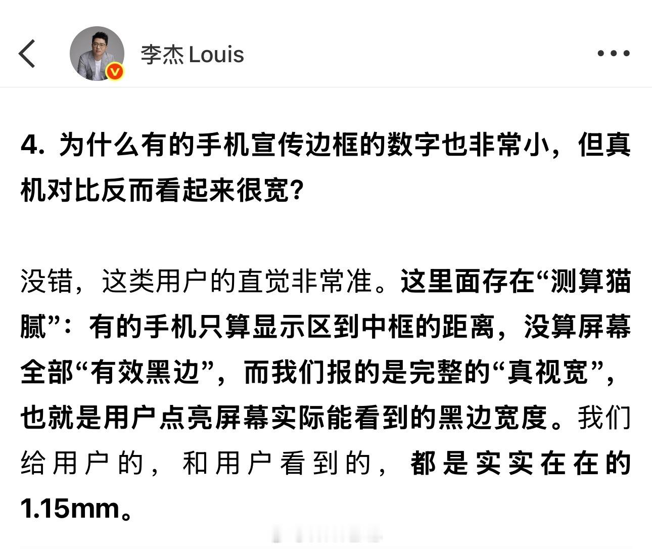 “为什么有的手机宣传边框的数字也非常小,但真机对比反而看起来很宽?”[doge]