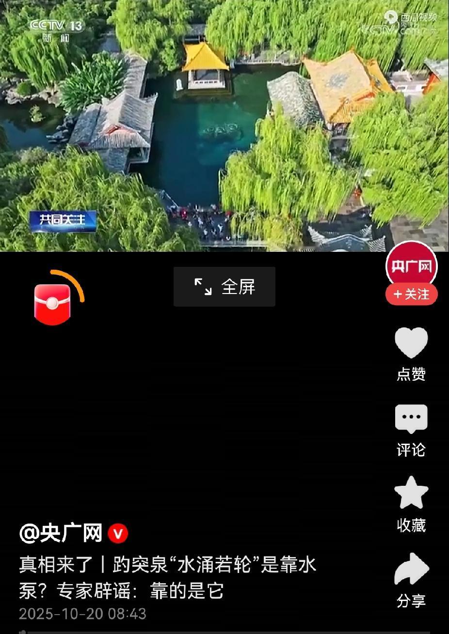 相关部门不作为,连央视都看不下去了,出面为济南趵突泉水泵辟谣。 央视之所以辟