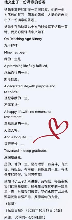 先生去世第二天,很多人都以为翁帆会一如既往的内敛沉默,继续以青衣素人默守静养着和先生的那份世纪之恋,殊不想,翁帆却在《光明日报》以另一种方式来悼念对先生的爱! 回溯往昔,翁帆与先生的缘分始于1995年。那时,翁帆还是汕头大学的一名学生,负责接待来校参加物理国际会议的先生。年轻的翁帆青春活泼,对学术充满热情,给先生留下了深刻印象。 此后多年,他们一直保持着书信往来,感情在字里行间逐渐升温。直到2004年,两人携手步入婚姻殿堂,这一消息犹如一颗重磅炸弹,在社会上引起了轩然大波。 当时,社会舆论对这段年龄差距巨大的婚姻充满了质疑。很多人认为翁帆是为了名利才与先生在一起,觉得这样的婚姻难以长久。然而,翁帆用21年的默默坚守和付出,回应了所有的质疑。在先生的学术生涯中,翁帆是不可或缺的助力。 先生专注于科研,常常废寝忘食,翁帆便在生活上无微不至地照顾他,为他准备营养均衡的饭菜,提醒他注意休息。在一些学术交流活动中,翁帆也积极协助,帮忙整理资料、安排行程,让先生能够更专注于学术讨论。 与翁帆和先生类似,娱乐圈中巩俐与米歇尔的婚姻也曾引发广泛关注。两人年龄差距不小,面对舆论压力,他们选择用彼此的陪伴和理解来化解。 巩俐在事业上继续拼搏,米歇尔则给予她充分的支持和鼓励。相比之下,翁帆与先生的婚姻更多了一份学术上的相互成就,翁帆在陪伴先生的过程中,也提升了自己的文化素养和知识水平。 随着时间的推移,社会对翁帆与先生婚姻的看法逐渐发生了变化。人们开始看到翁帆在这段婚姻中的真诚和付出,理解了她对先生深深的爱。大家不再用世俗的眼光去评判他们的婚姻,而是给予了更多的尊重和祝福。 如今,先生已然离去,翁帆在《光明日报》上的悼念,没有华丽的辞藻,却饱含深情。她用朴实的文字,诉说着与先生相处的点点滴滴,让人感受到那份跨越年龄的真挚爱情。 先生在学术上交出了一份满意的答卷,而这背后,离不开翁帆21年如一日的默默坚守和付出。若没有她的支持,先生的答卷或许会留下遗憾。 先生去世后,翁帆的生活规划也备受关注。她可能会继续自己的学业,在知识的海洋中遨游,也可能会在社会公益活动中发挥自己的力量。 她的每一个选择,都将对社会产生一定的影响,尤其是对社会对女性在婚姻中角色认知的影响。她用自己的经历告诉大家,爱情可以跨越年龄,女性在婚姻中也可以有自己的追求和价值。 大爱无需赘言,陪伴才是最长情的告白。翁帆用21年的陪伴,诠释了爱情的真谛。在这个快节奏的时代,她的故事如同一股清流,让我们看到了爱情的美好和力量。 愿她在未来的日子里,能够继续追寻自己的幸福,书写属于自己的精彩人生。 文章描述过程、图片都来源于网络,涉及版权或者人物侵权问题,或有事件存疑部分,联系后即刻删除或作出更改