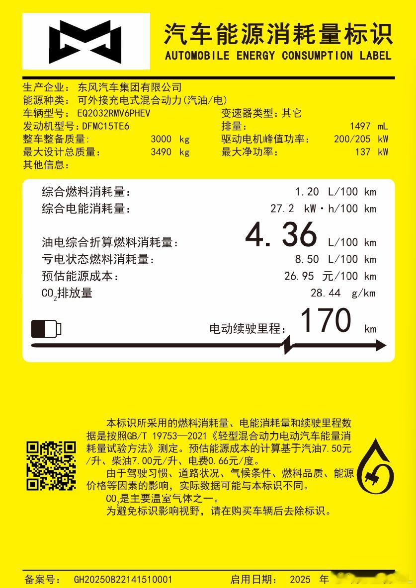 拿工信部的汽车能源消耗量标识来对比一下。