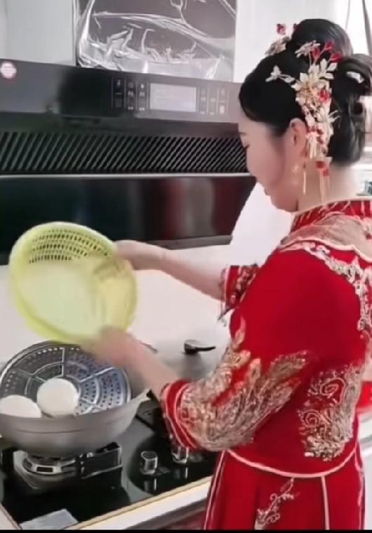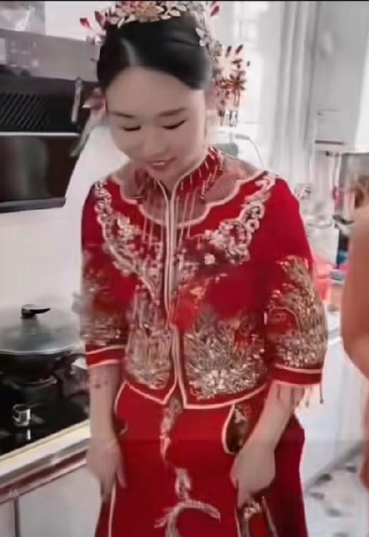 毒鸡汤喝多了,新娘故意把馒头撒在地上,网上说这样以后在家里就不用做家务活了 这小