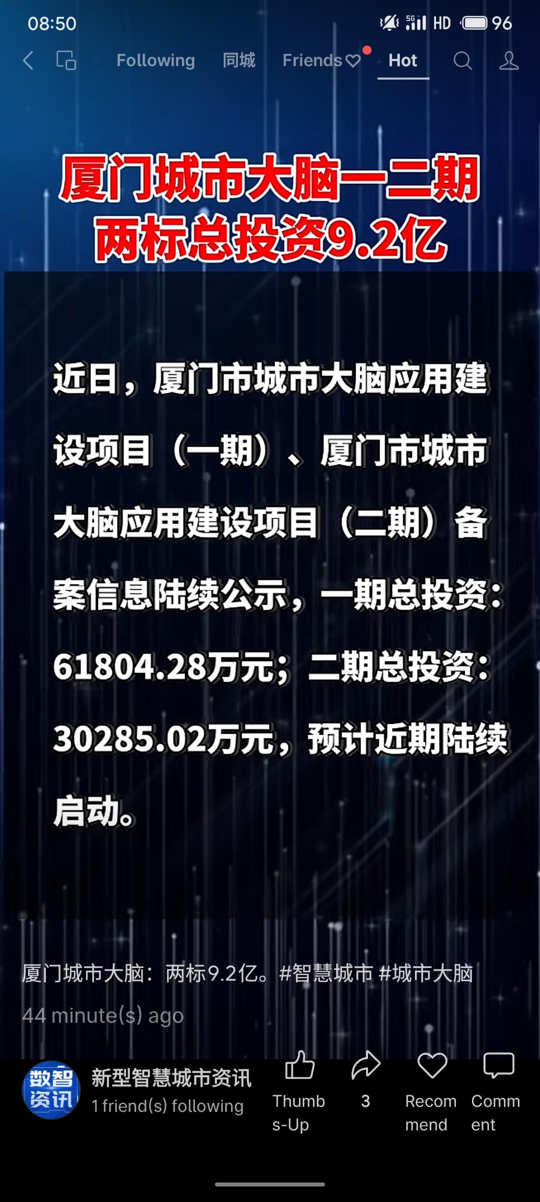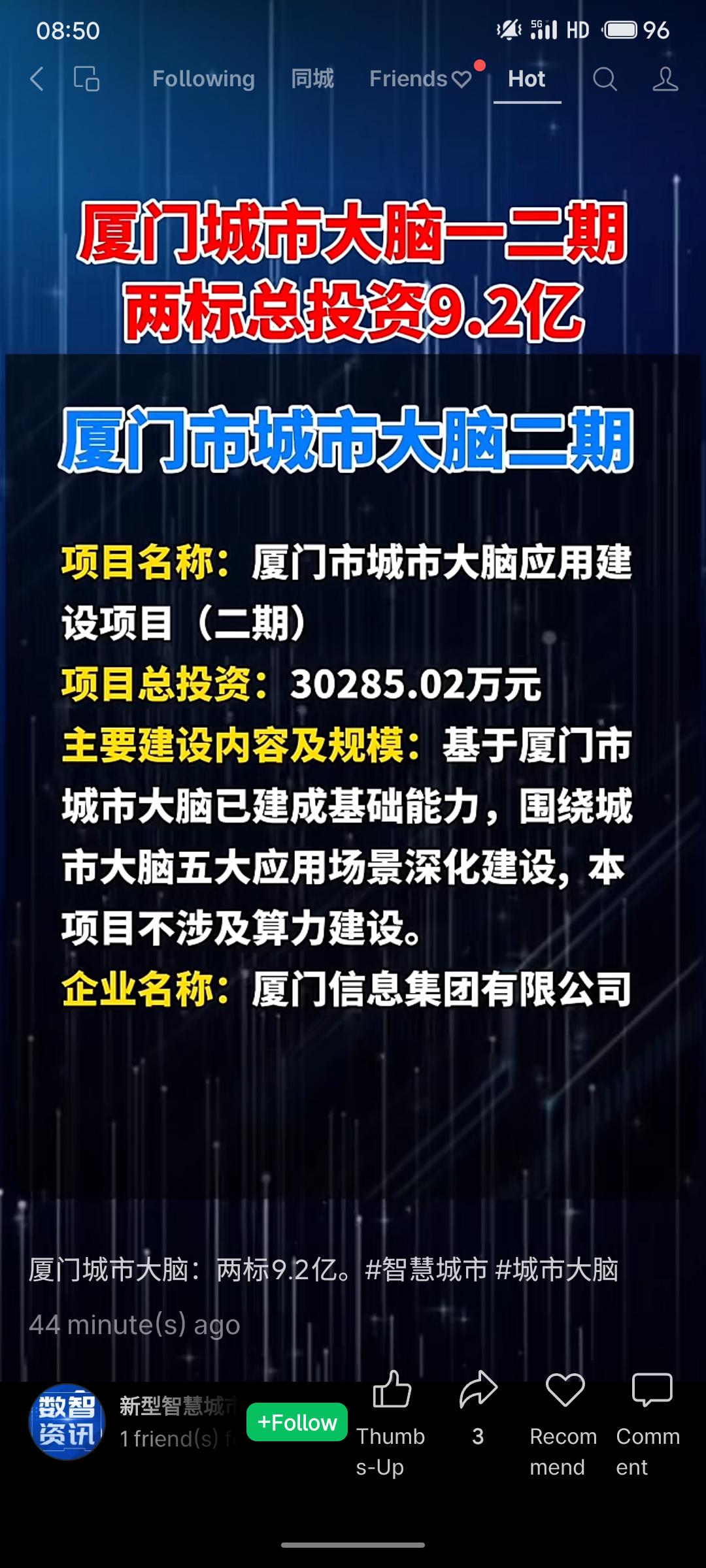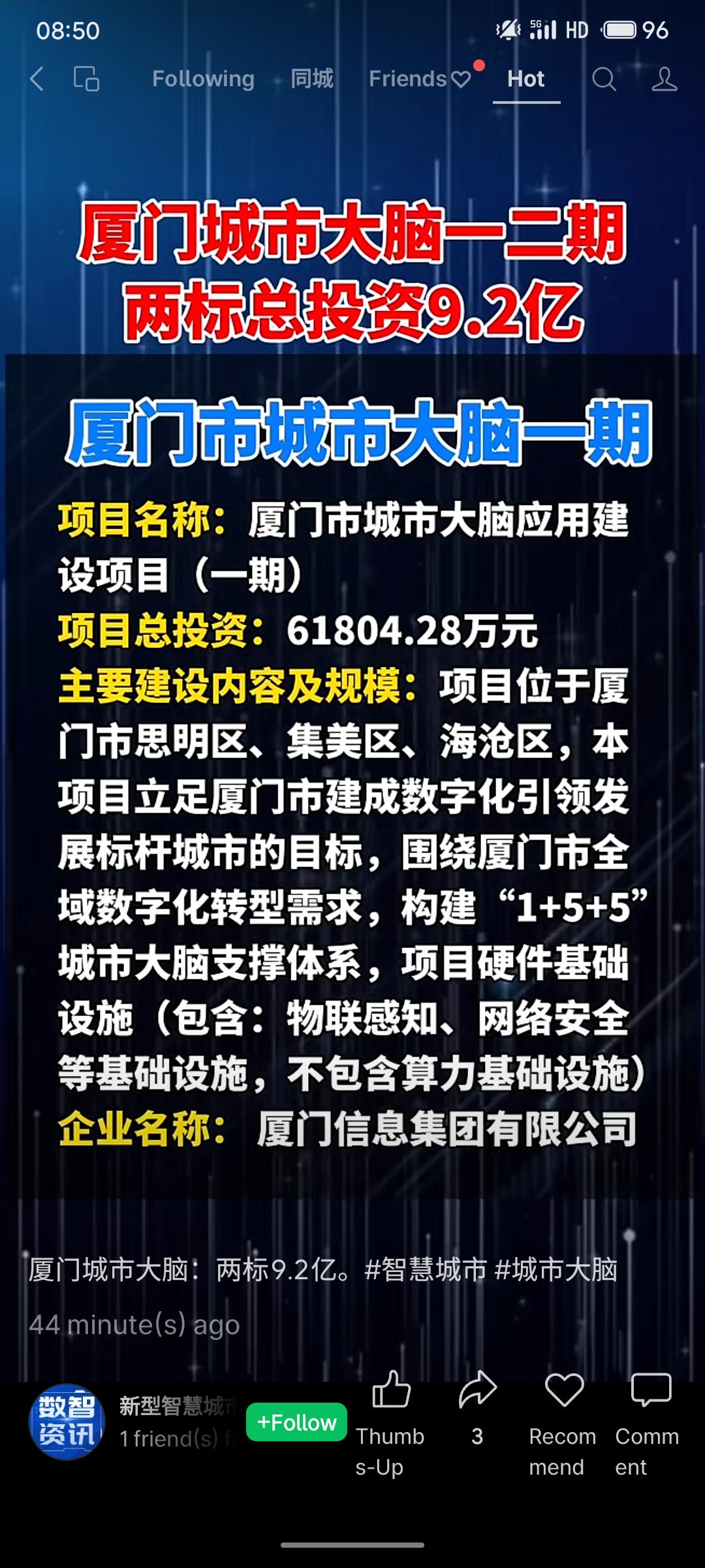 厦门市城市大脑应用建设项目(一期、二期)已完成备案,总投资额达9.2亿元。其中一期投资约6.18亿元,将构建“1+5+5”城市大脑支撑体系,完善物联网感知及网络安全等基础设施;二期投资约3.03亿元,将在一期基础上深化五大应用场景建设。两期项目均由厦门信息集团有限公司承建,旨在推动厦门全域数字化转型,不涉及算力基础设施建设。