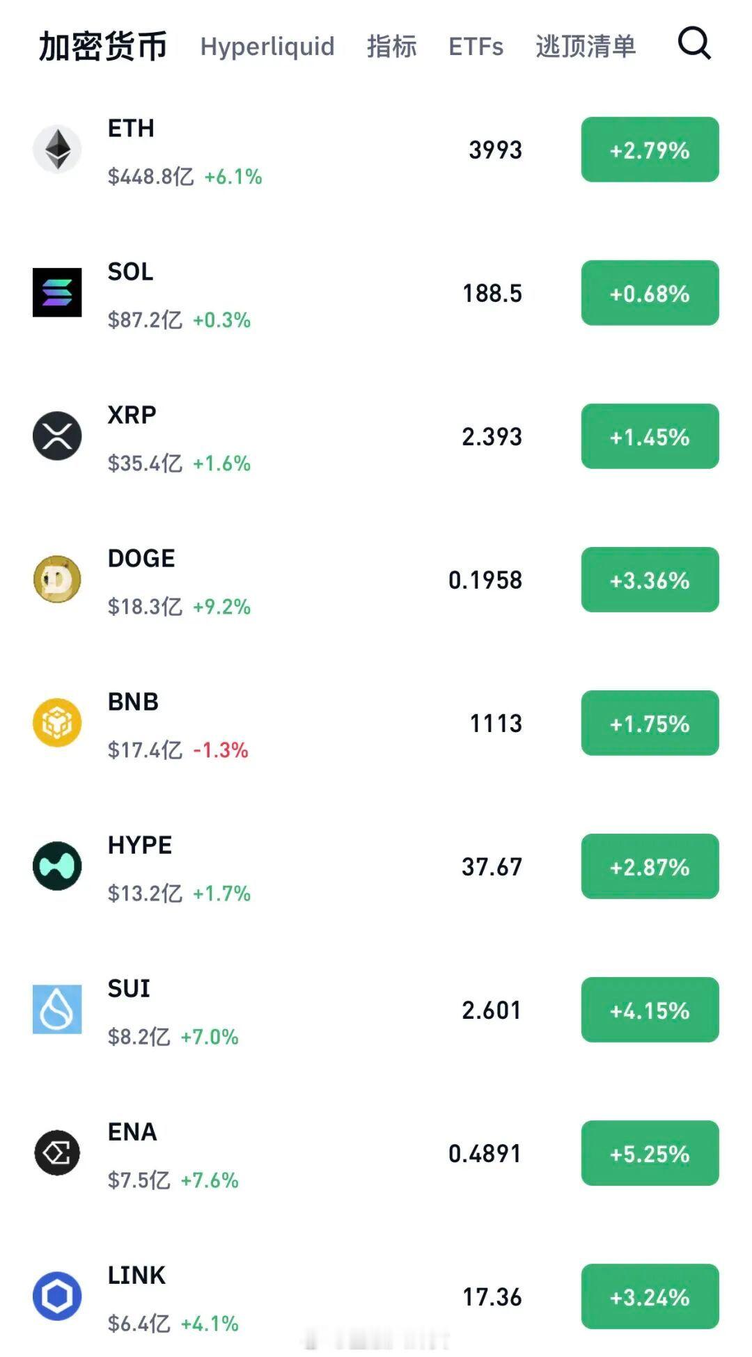 集体大涨,超10万人爆仓!加密货币市场全线大涨,比特币走强,以太坊上涨2.79%,狗狗币上涨3.36%,SUI币上涨4.15%,ENA币上涨5.25%[思考]