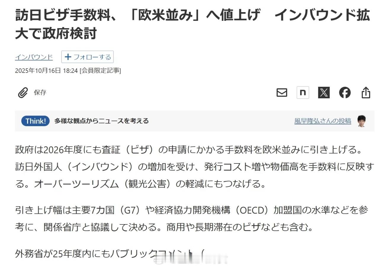 日本签证费或将暴涨9倍,日本政府计划自2026年起大幅提高签证申请费用,目标是与欧美国家收费标准持平[思考]