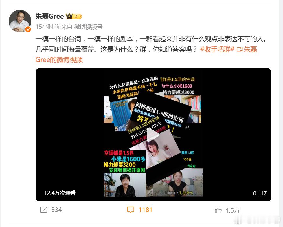 格力的朱磊Gree发的微博,直接炮轰小米空调。