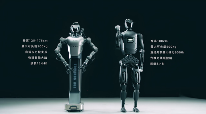 TR4是一款物理智能复合型轮式人形机器人,TR5则定位为高性能通用人形机器人,身高1米8、体重75公斤,单腿承重800公斤,双臂协同操作精度可达毫米级。