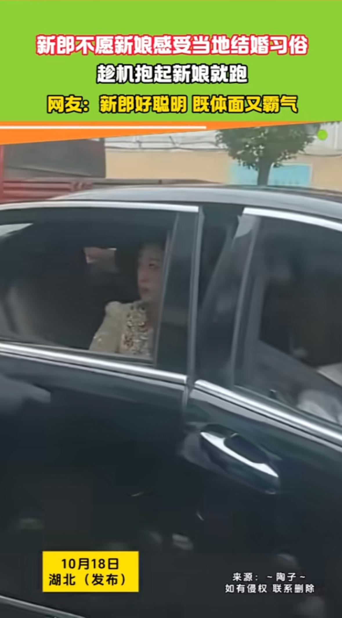 “嫁对人了!”最近湖北一对新人的婚礼视频火遍全网——婚车刚停,新郎二话不说冲上前,一把将新娘从车里抱出来,像抱着全世界最珍贵的宝贝,一路稳稳冲进酒店。亲友们笑着起哄,可新郎愣是没给任何人“闹新娘”的机会。新娘靠在他肩头,眼里闪着光,这场面看得网友直呼:“这才是婚礼该有的样子!” 婚礼上的“温柔革命”:他用行动守护爱人的体面 这场婚礼的“特别”,藏在细节里。按当地习俗,新娘下车后要被亲友“闹一闹”,可新郎早看透了这些“热闹”背后的尴尬——有人会借着习俗让新娘喝烈酒,有人会起哄让新人做亲密动作,甚至有地方让公公抱新娘进门,全程被围观起哄。新郎心里门儿清:婚礼是两个人的仪式,不是供人消遣的表演。于是他提前和亲友通气,用“抱新娘进酒店”的干脆动作,替她挡下了所有可能的不适。 视频里,新郎抱着新娘时,步子稳得像在走红毯,新娘的手轻轻搭在他肩上,笑里带着点羞涩,更多的是安心。没有争执,没有尴尬,只有两个人默契的“逃离”——逃离那些打着“习俗”旗号的越界行为,逃离被当笑料的窘境。网友说:“他抱的不是新娘,是对她的尊重和疼惜。” 婚闹变“婚羞”:当习俗成了冒犯的遮羞布 新郎的“护妻”行为之所以引发共鸣,是因为太多人曾在婚礼上受过委屈。2023年河南某地,新娘被叔伯公公接力抱着跑,新郎却乐呵呵跟在后面,全然不顾妻子脸上的尴尬;2021年湖北黄冈,新娘被公公抱下车,忍无可忍喊新郎来救场;更离谱的是,有些地方闹伴娘、扒衣服、拍屁股,甚至让新人当众“表演”,美其名曰“热闹”,实则是对人格的践踏。 这些“习俗”的荒诞,早被网友骂过无数次。有人问:“为什么非要让新娘被陌生人抱?为什么非要让新郎喝到吐?”答案很简单:部分人把婚礼当成了满足自己恶趣味的场合,用“传统”绑架新人,用“热闹”掩盖越界。就像有网友说的:“婚礼不是马戏团,新人不是供人取乐的小丑。” 爱不是口号,是关键时刻的“站出来” 新郎的“抱走”行为,看似简单,实则藏着婚姻的真谛——爱不是婚礼上的誓言,而是日常里的“我懂你”。他懂新娘对尴尬场面的抗拒,懂她想要的是被尊重的仪式感,所以用行动替她做了选择。这种“站出来”的勇气,比任何甜言蜜语都更有分量。 婚姻里最动人的,从来不是“我养你”,而是“我护你”。当有人起哄让新娘喝酒,他能挡下酒杯;当有人开低俗玩笑,他能黑脸制止;当习俗变成冒犯,他能果断说“不”。这样的伴侣,才会让人在未来的日子里,哪怕遇到再大的风浪,也敢放心依靠。 移风易俗,从“拒绝被冒犯”开始 新郎的“抱走”行为,也给所有新人提了个醒:婚礼是两个人的事,习俗可以尊重,但越界的“热闹”必须拒绝。就像有网友说的:“传统不是挡箭牌,低俗不是理由。”真正的习俗,应该带着祝福的温度,而不是让人难堪的刺痛。 这些年,从“抵制恶俗婚闹”到“简化婚礼流程”,越来越多人开始反思:我们要的到底是“别人眼中的热闹”,还是“自己心里的幸福”?答案不言而喻。婚礼可以简单,可以温馨,但绝不能成为冒犯的借口。 最后想问问你:如果你的婚礼上遇到越界的“习俗”,你会像这位新郎一样果断拒绝吗?你觉得哪些婚礼习俗该被淘汰,哪些该被保留?来评论区聊聊吧——毕竟,婚姻的幸福,从来不是靠“热闹”撑起来的,而是靠两个人的互相守护。 来源:头条热搜