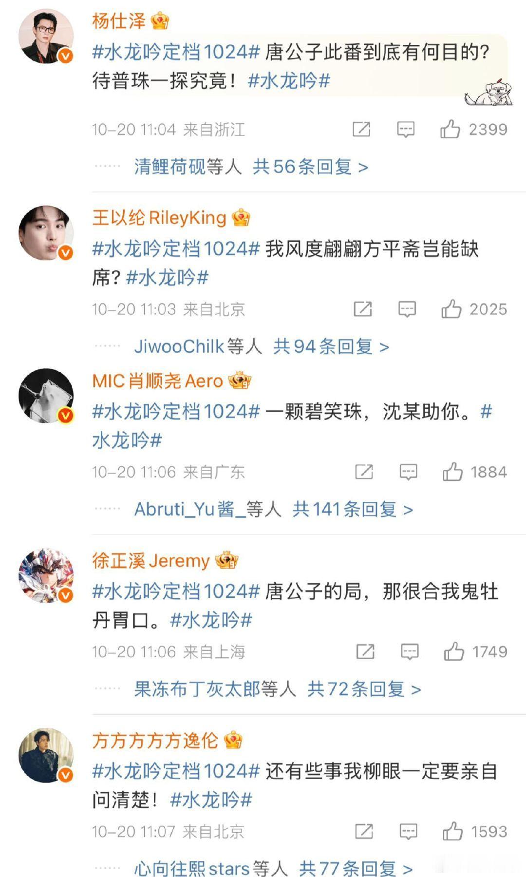 罗云熙评论区好多人啊 恭喜《水龙吟》定档1024!罗云熙的“唐公子局”太热闹,肖顺尧、陈瑶等群星打卡,沈郎魂、柳眼等角色梗刷屏,评论区秒变江湖群像剧。坐等唐俪辞搅动江湖,期待值拉满!