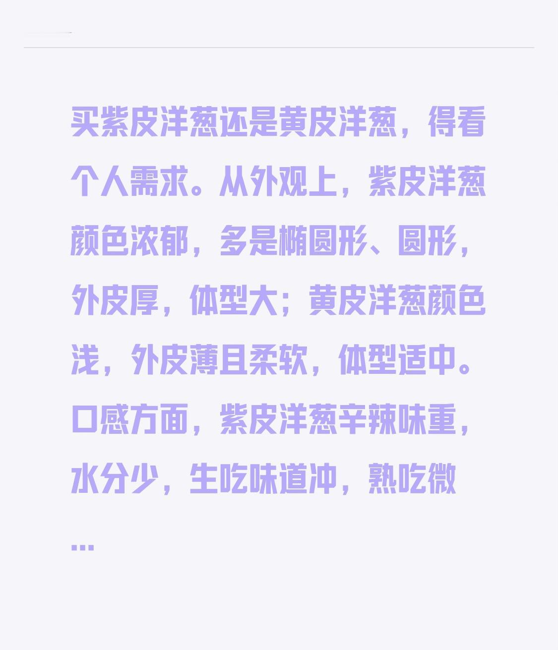买紫皮洋葱还是黄皮洋葱,得看个人需求。 从外观上,紫皮洋葱颜色浓郁,多是椭圆形、