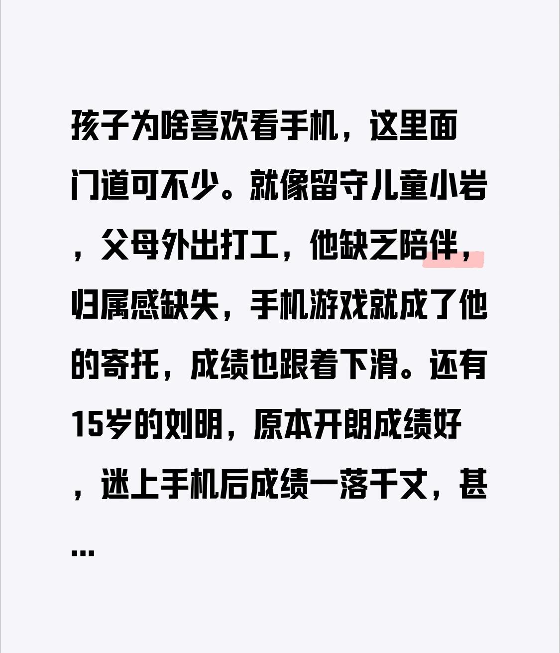 孩子为啥喜欢看手机,这里面门道可不少。就像留守儿童小岩,父母外出打工,他缺乏陪伴