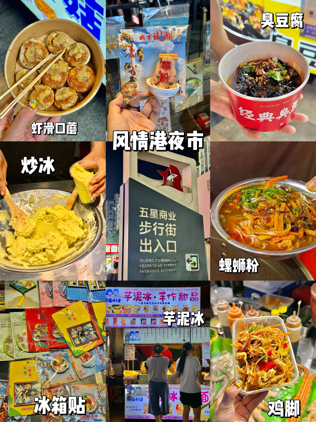 下楼就是小吃!左右手两边都是夜市!风情港夜市和五星步行街!顶上就是标准建筑柳州大桥🌉可以打卡拍照