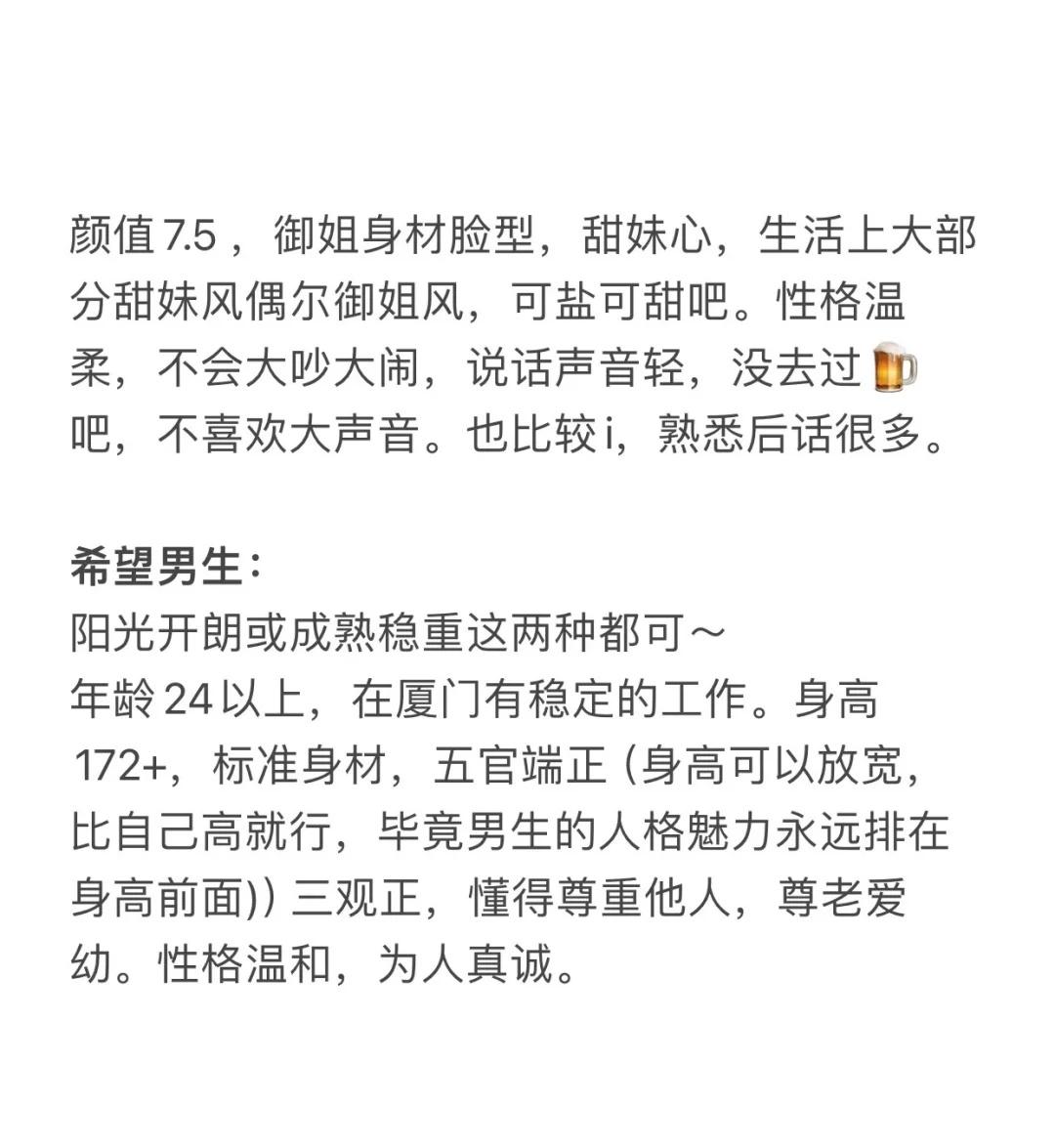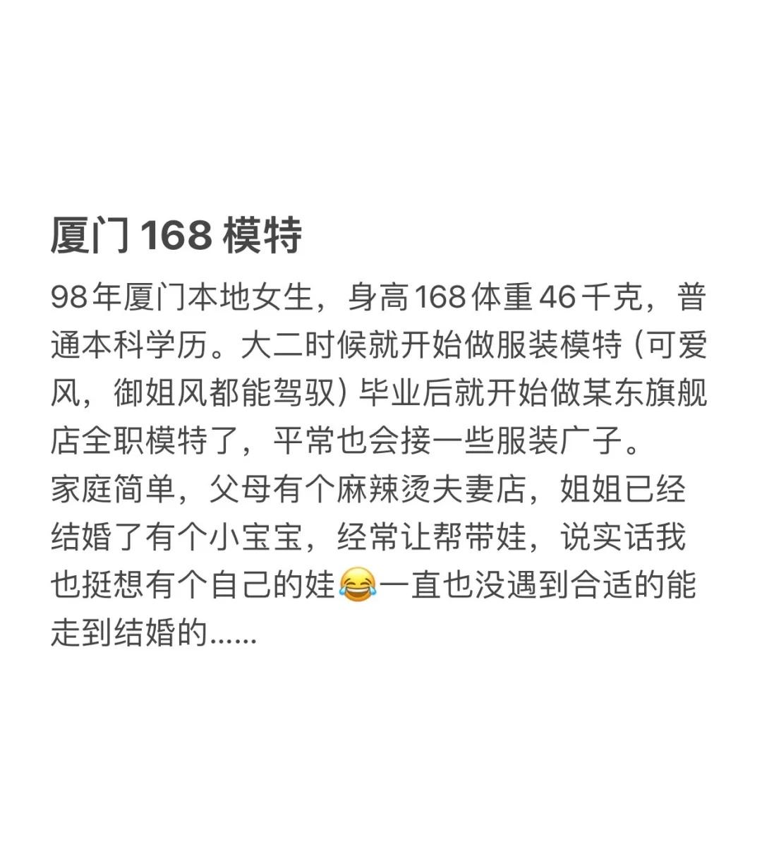 厦门 98女 工作特殊 找个能接受的 厦门 厦门生活 非本人征婚,线下真实嘉宾,资料已核实,已获得本人授权