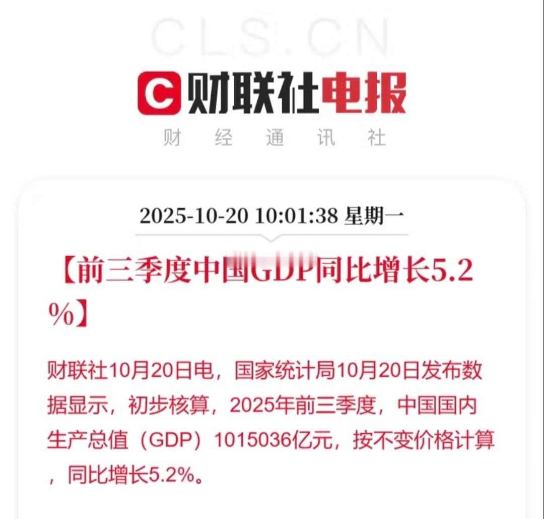今年前三季度我国GDP同比增长5.2%