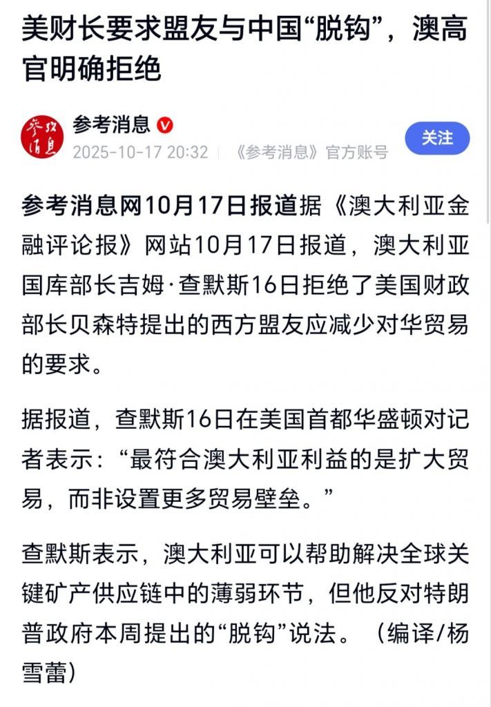 美国要求澳大利亚一起制裁东大,减少对华贸易,澳大利亚直接拒绝 [二哈]