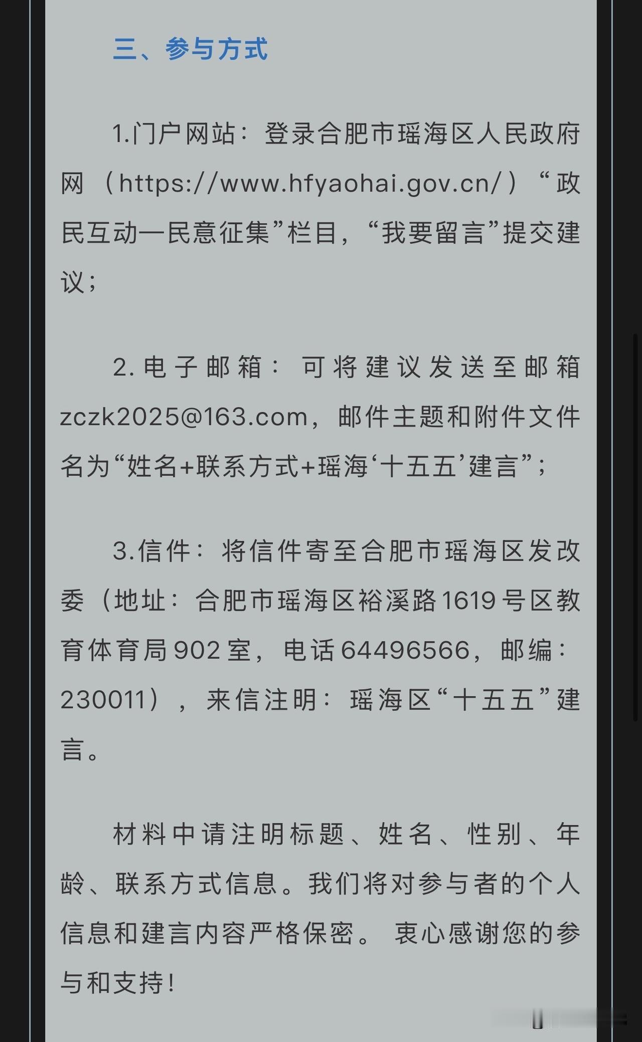 你问我答家人们,还在网上吐槽瑶海发展慢吗?觉得这里被低估、被忽视?现在机会来了!合肥市瑶海区“十五五”规划建言献策通道已开启!不用再躲在屏幕后当“键盘侠”,你的每一个脑洞、每一条建议,都可能成为瑶海崛起的关键!赶紧站上这个舞台,用你的想法为合肥赋能,一起见证新瑶海的华丽蜕变[努力]!爆料