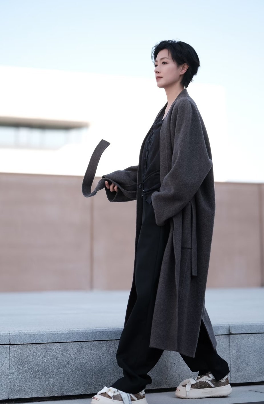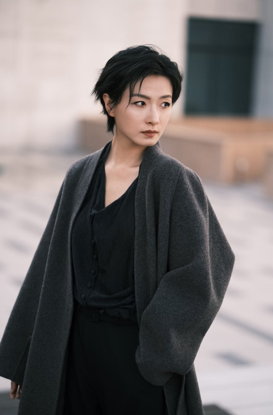 万茜的大衣加上她利落的短发,真是又飒又美呀~