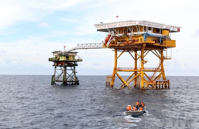 外媒报道称中国海警4301舰、5009艇和21559艇于10月16日至18日对7个越占我南沙岛礁进行抵近监视巡逻,距离越占岛礁仅2-5海里。越南共侵占了我29个南沙岛礁,其野心很大,在这些岛礁上驻军1500人以上。还对其中21个岛礁进行了填岛作业,扩大其侵占岛礁的面积。同时越南海军第二海区还在南沙西南部海域各暗沙上兴建了众多高脚平台(图5),建立专门的部队轮番驻守。