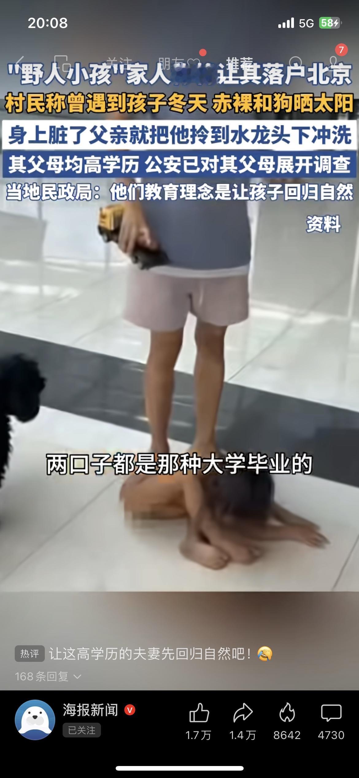父母高学历却养出“野人娃”?冬天赤裸和狗晒太阳,脏了水龙头冲,还要落户北京 太