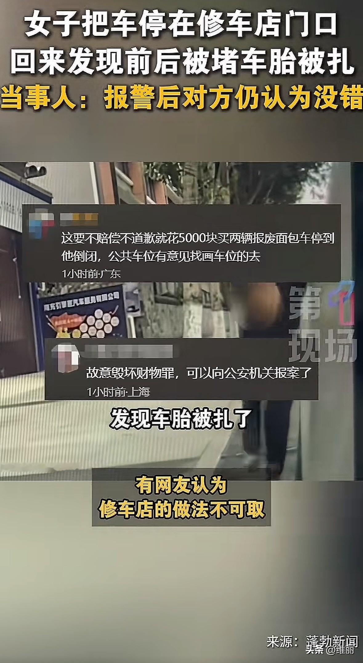 四川南充一女子因周边车位停满,将车停在某修车店门口的公共停车位,打算停几分钟。修车店老板阻拦,女子没理会。十分钟后女子回来,发现车被前后两辆修车店的车堵住,车胎也被扎破。 女子报警后,确认是修车店老板所为。但在派出所,老板态度恶劣,拒不道歉。事后,城管重新划好车位线,竖起严禁私占的牌子,还装了摄像头。警方对老板作出行政拘留10天、罚款500元的处罚,市场监管部门因私涂公共标线对其顶格罚2万,列入经营异常黑名单。 这事儿里,修车店老板做法太过分,公共车位不是他私人的,不能想占就占、想扎胎就扎胎。他觉得女子停车影响他生意,但也不能用这么极端的方式。大家都得遵守规矩,不然社会不就乱套了嘛。