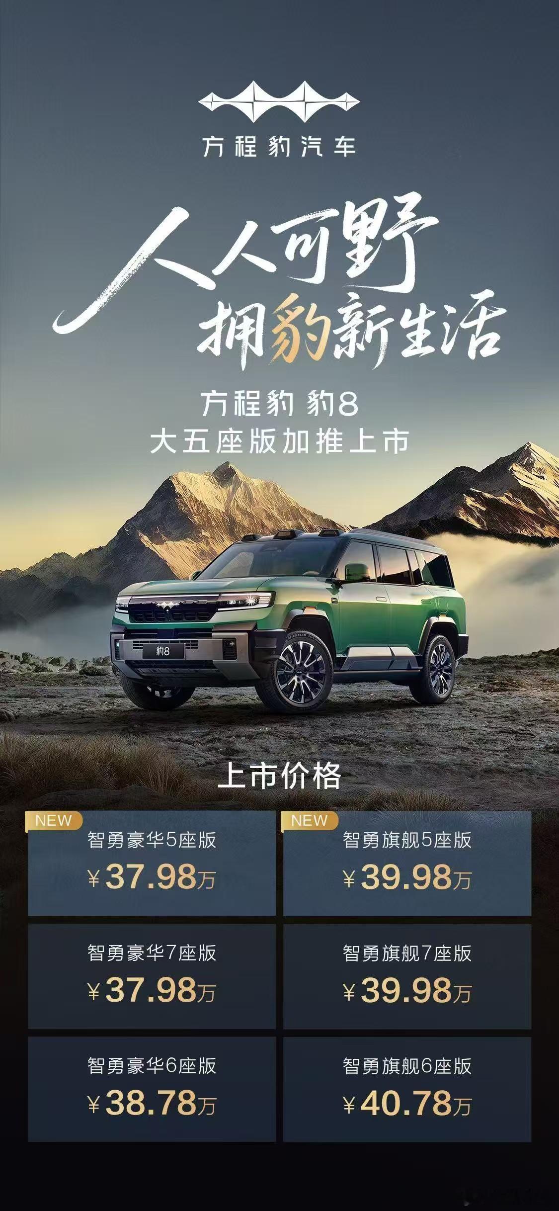 方程豹新车价格太香了,真是把电驱越野门槛打下来了!豹5长续航版26.98万起,续航超1300km;豹8大五座版37.98万起,空间配置直接拉满。还搭载了钛7同款智慧生态,这价格配上DMO+平台和乾崑智驾ADS 4,有技术有诚意[不愧是你]