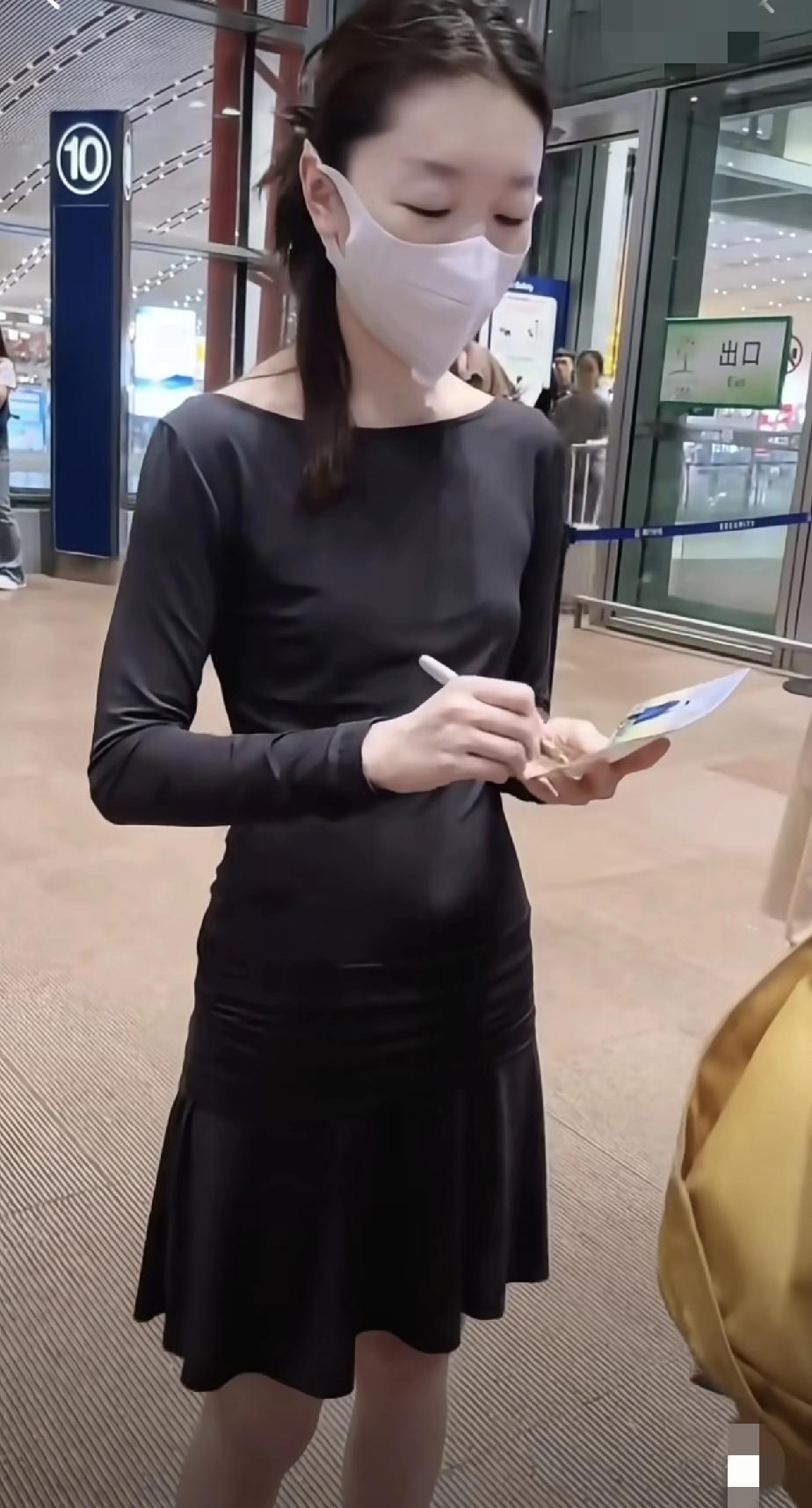 气质女神周冬雨机场被偶遇, 薄薄一片,太瘦了些。 但是非常和蔼亲民, 对粉丝有求