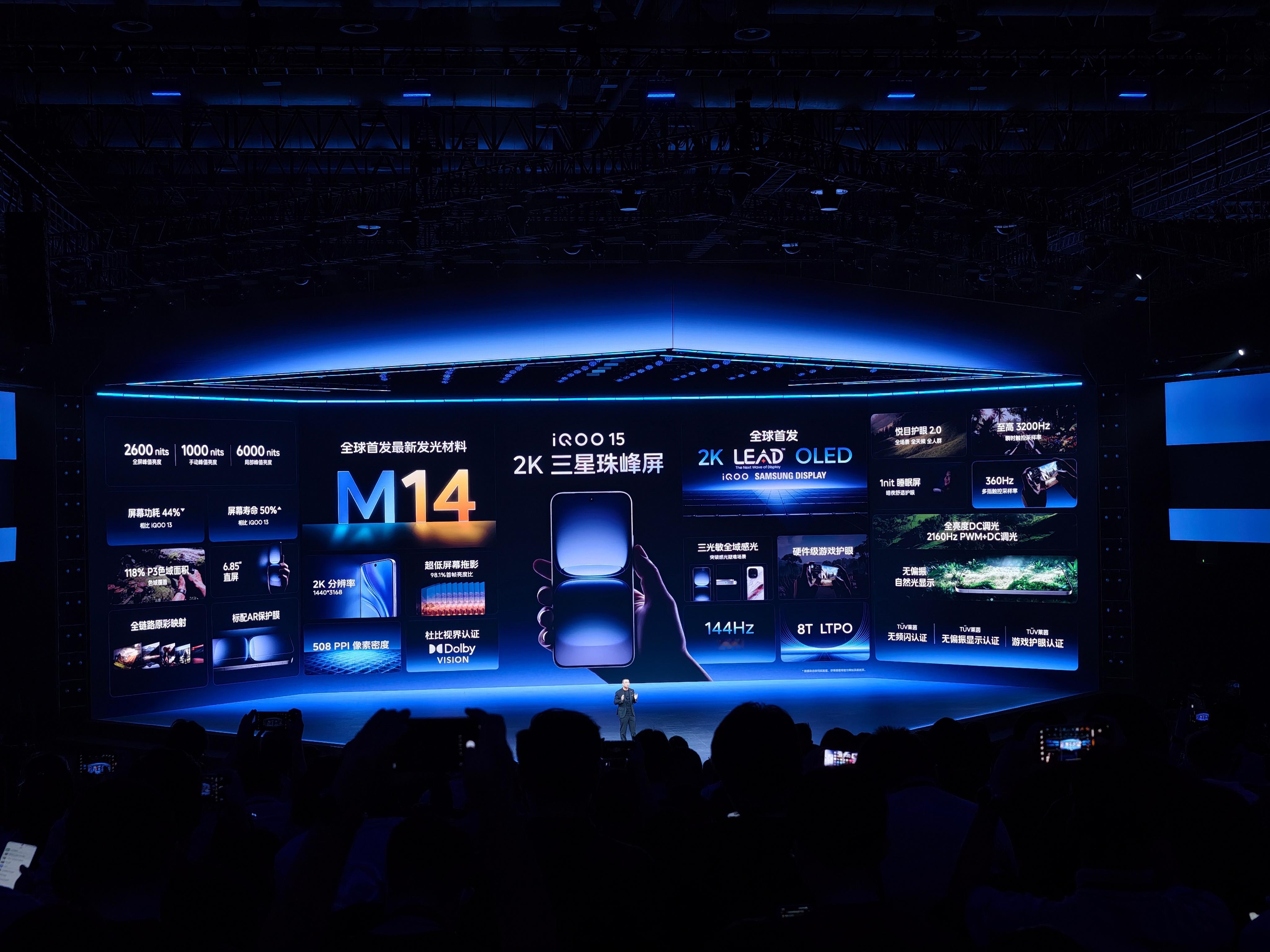 iQOO15这块2K三星珠峰屏幕确实有点东西,三星把最顶的M14材质给了iQOO,首帧亮度比高达98.1%,全球首发2K LEAD OLED,功耗更低亮度更高,峰值亮度干到了6000nit。