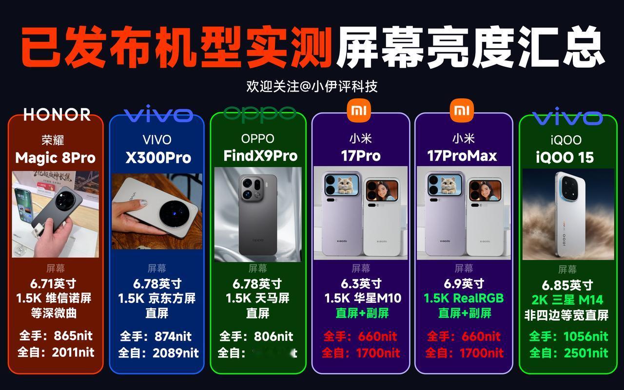 iQOO 15的详细信息汇总以及各项指标配置的罗列,总体来说这一代虽然涨价了,但是总体的产品力是不错的,尤其是这三星M14基材 2K屏,那是真真的核心竞争力,手动1000nit,峰值2600nit目前全行业最高,非常顶。 我之前一直反复在给大家说,衡量一块屏幕素质好坏的黄金标准那就是看屏幕亮度,只要屏幕亮度足够高,素质绝对就不会差。 因为OLED屏最重要的就是看发光基材,而发光基材什么最重要就是亮度,亮度能调的越高,说明发光材料的底子更好,那么屏幕自然就不会差。 大家觉得iQOO 15值得买么?