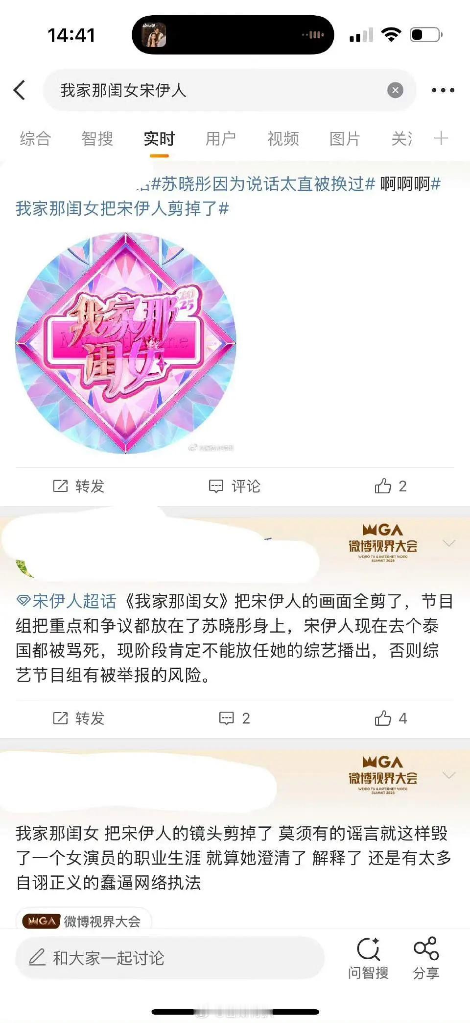 🍉宋伊人新综艺《我家那闺女》的镜头被剪了……