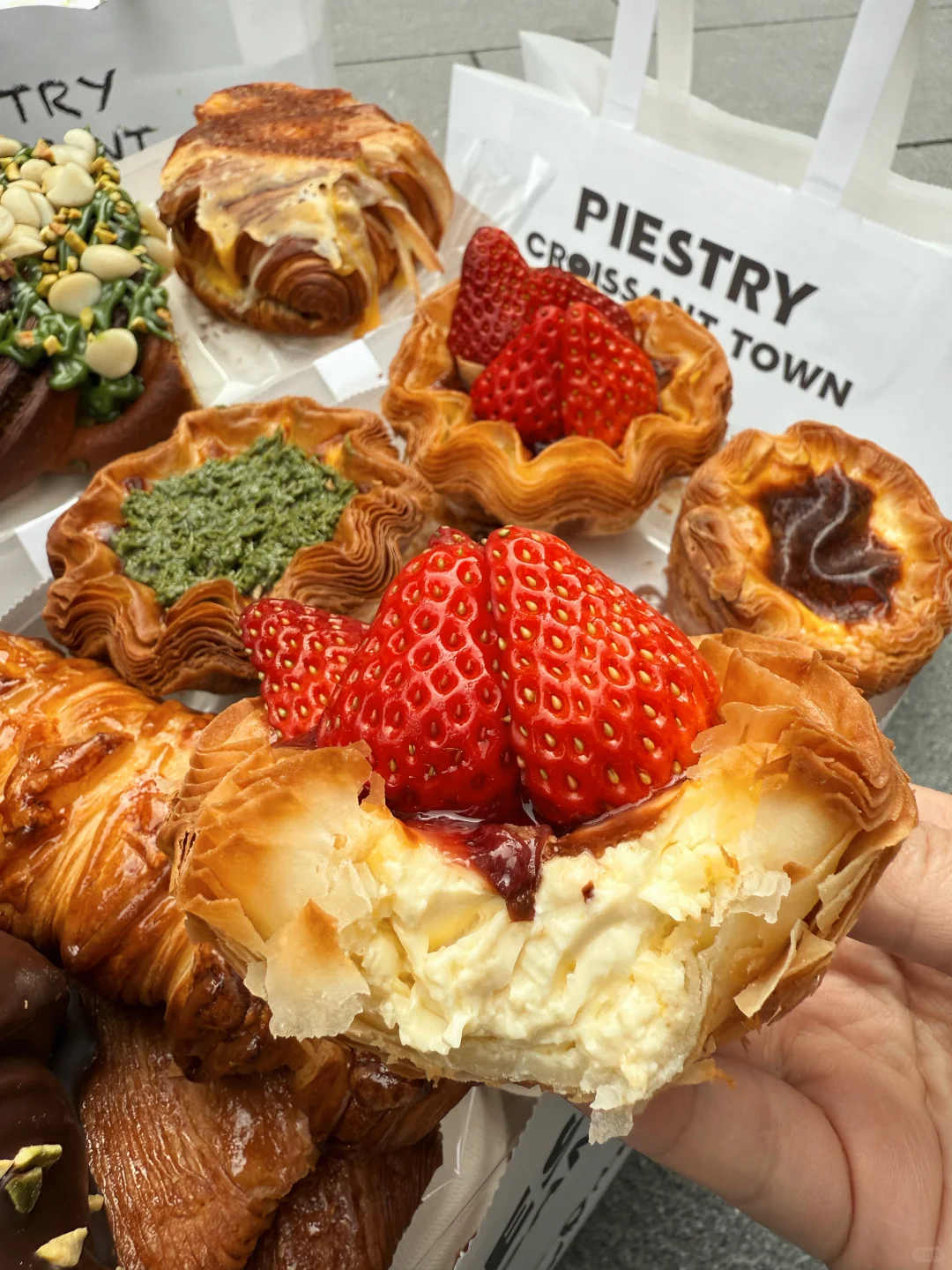 最近风超大的一家烘培店,特意坐地铁来打卡! 真的没有失望,买了三大袋都不够吃😭😭各种小面包、可颂、蛋挞…种类好多又好吃便宜。 📍PIESTRY派思奇