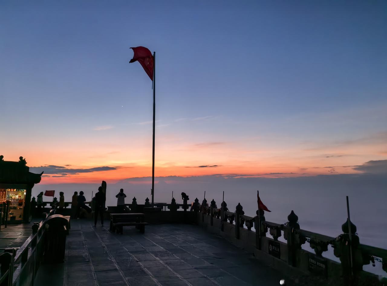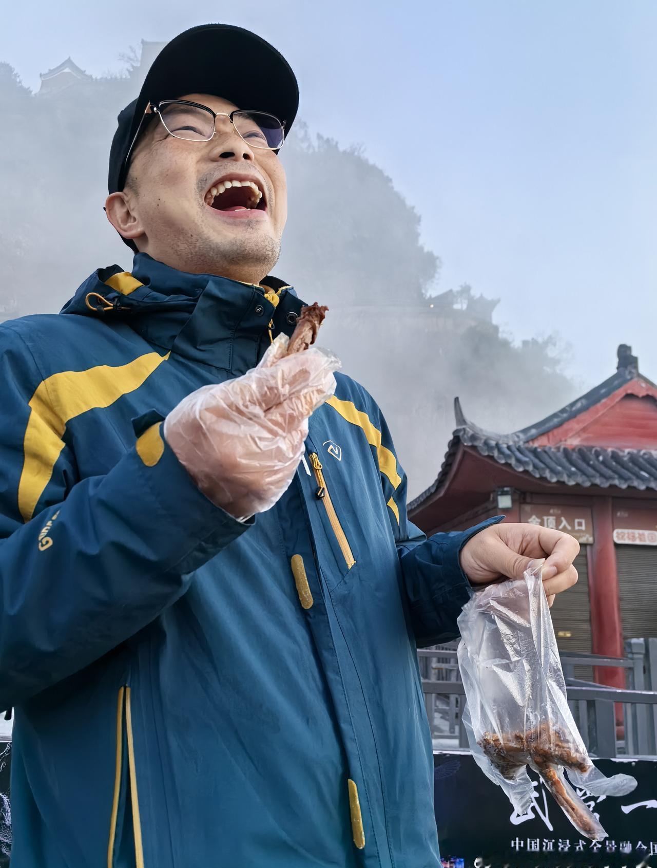 10.9武汉自驾出发武当山夜爬经验值+1 终于有空写下这篇武当山记录啦 国庆假期错峰出游 9号早上7点从武汉自驾出发 中午11点途径襄阳和同学约饭 吃了很好吃的鸭唇王,地道襄阳菜,很好吃 还打包了红糖饼,怪好吃的 下午4点到了武当山 坐了半个小时车上山 在南岩找了一家民宿 因为不是高峰期,房间很充裕,价格也还好 民宿布置很有格调,饭菜味道也不错,晚上点了2个菜,吃的很撑 一直是阴雨天气,本来打算夜爬的,有点犹豫,怕山上还是这种天气,更别说日出了 但是想着难得出来一次,也一直念着要夜爬武当山,还是决定夜爬 定了3点半的闹钟,3点55分从酒店出发 前半个小时心率一直爆表,太久没运动了,感觉心脏要跳出来了,特别难受……建议爬山前还是要保持运动 说实话,要不是和队友一起,凌晨在下着雨的山里,漆黑一片,着实是有点吓人的 不过神奇的是,我们爬完七星树,快到山顶起点那段路的时候,地面突然全都干了,也没有雨没有雾,确信今天肯定会有太阳,瞬间觉得值了,爬起来更起劲了 天上的繁星闪烁,真的好美好美 爬到山顶,明显感觉温度很低,加上了薄羽绒,雾气很大,风一阵一阵的吹着 隐约看到了太阳,正好被一朵云挡住了,风一吹又看到了圆圆的太阳,右边那片还遍布乌云甚至闪着闪电,好奇特的景观 果然,老天不会辜负每一个早起的人 我们看到了不一样的美景 还好我们半夜爬起来了,看到了日出和云海 在山顶啃着我们在家卤好的鸭翅,真是绝了 难忘的记忆 武当山还会二刷的