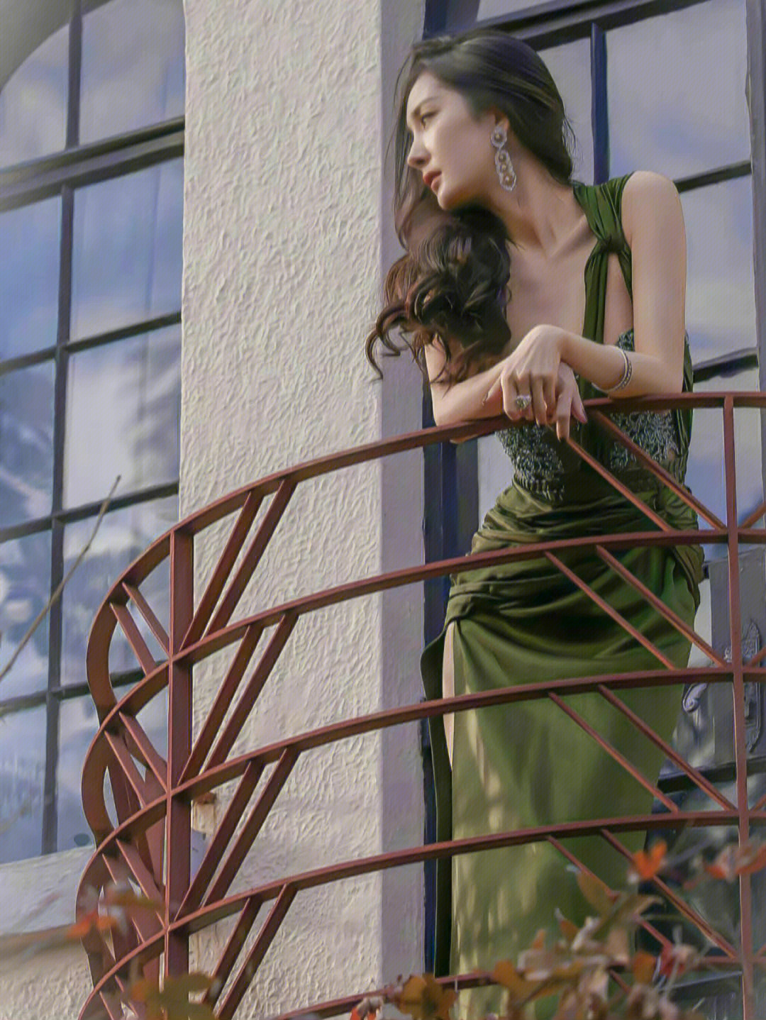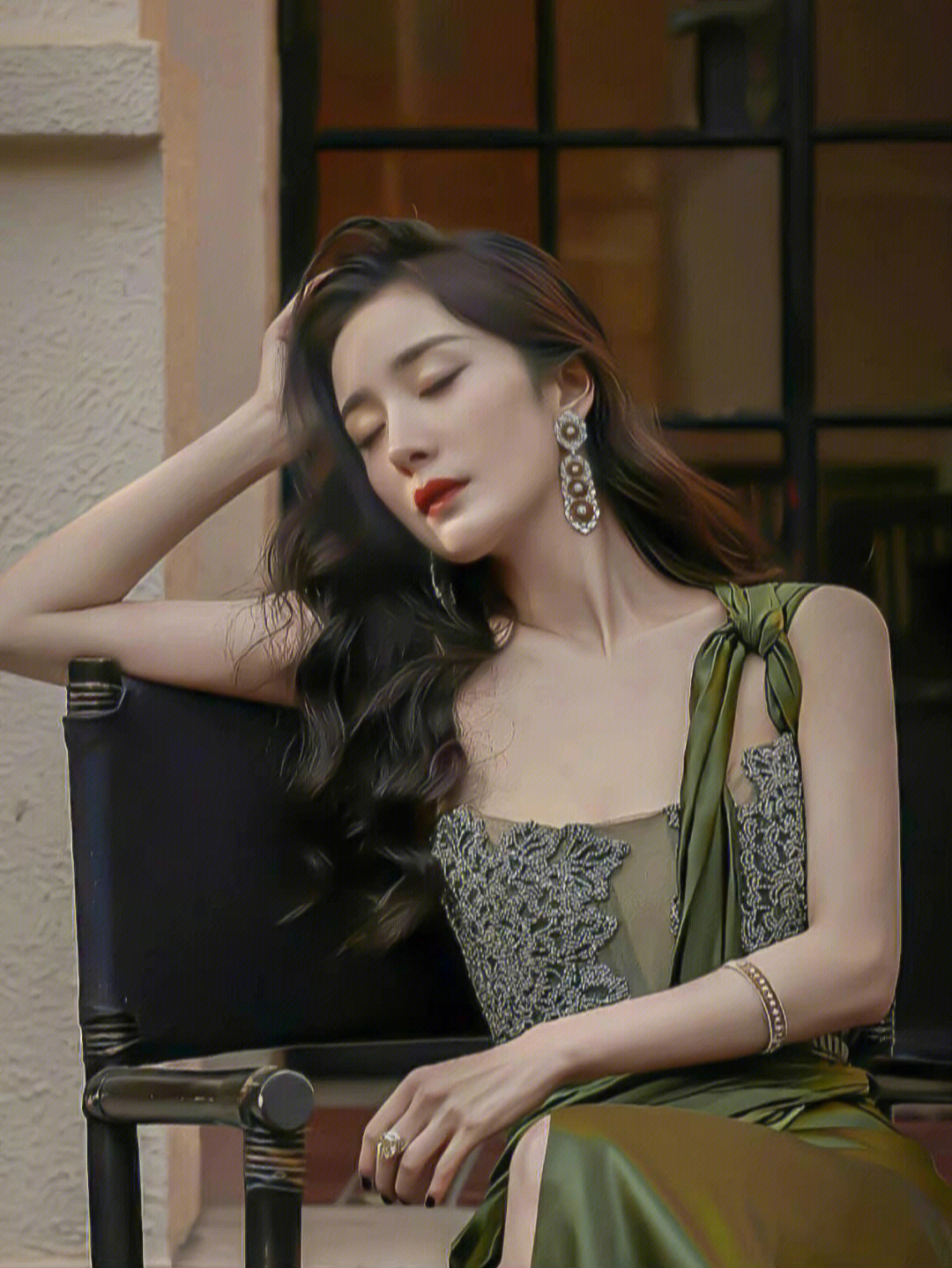 杨幂,浪漫体质,这套绿色真的超级好看!