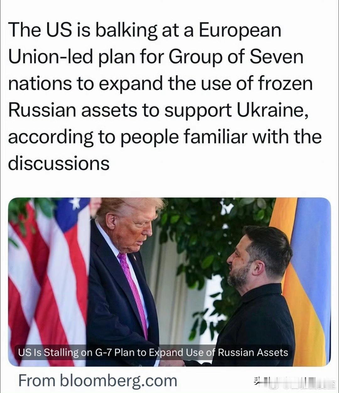 Bloomberg (彭博社)报道:上周国际货币基金会议期间,讨论G7将俄被冻结资产的收益转交乌克兰时,美国明确反对,理由是不利于全球金融市场的稳定。 日本赞同美国的态度 。 美国对俄立场转变对G7颇有影响力,标志着欧洲几个国家早就推动的此项议题正式搁浅。这会直接影响到对乌克兰的武器援助,使乌克兰难以抵抗俄罗斯的进攻,迫使泽连斯基两手空空地走上谈判桌。