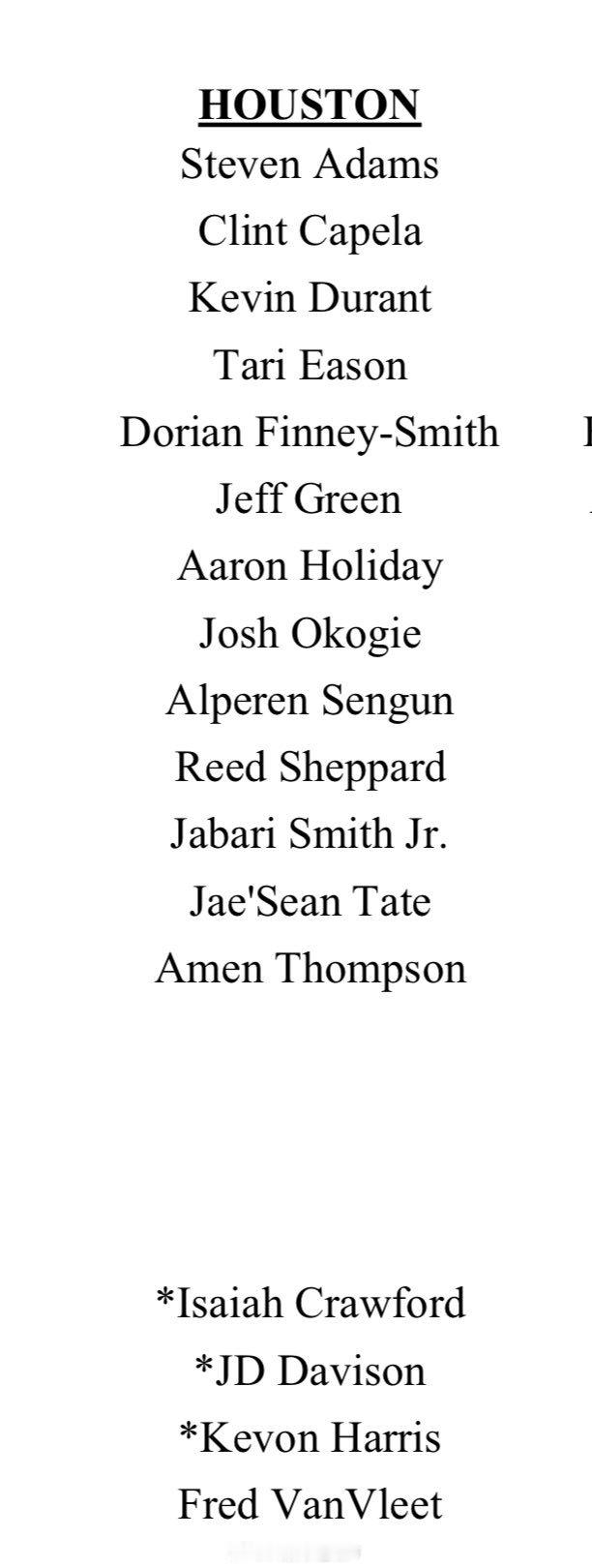 火箭已经提交了本赛季常规赛大名单!和我昨晚发的一模一样,没有任何变化!没有交易,没有签人(只能裁双向合同,然后签双向合同)