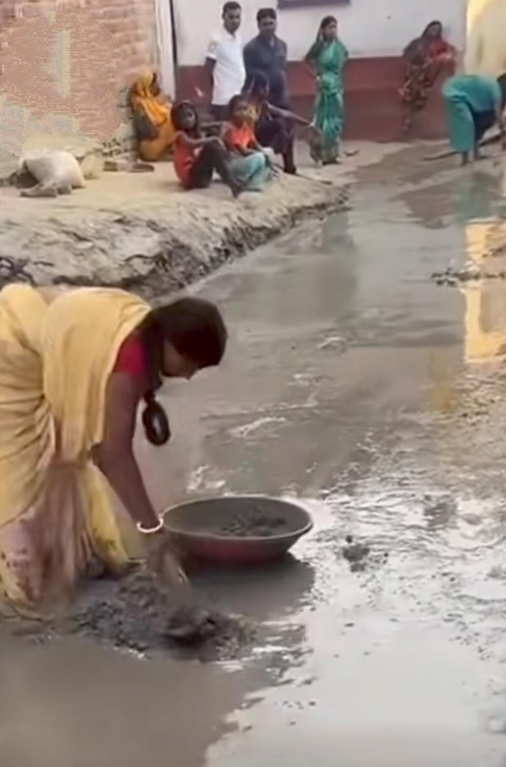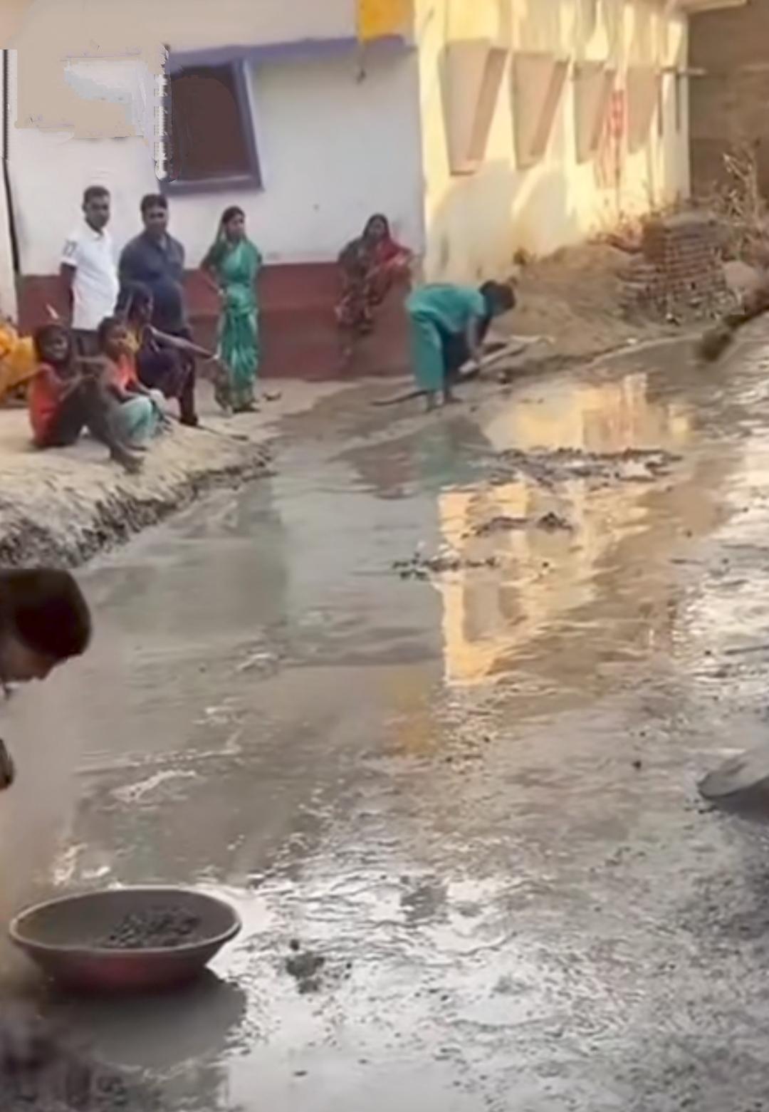 近日,在印度贾坎德邦发生有趣的一幕,在一处城镇修路现场,施工队刚刚把混凝土铺设到路面上,一些印度妇女光着脚,拿着盆跑到路中间开挖! 她们把还没干的混凝土挖走,拿回去修自家院子! 可能在印度,法不责众,包工头满眼无奈,却又无可奈何。 身后都是看热闹的村民,看来顺利修完一条路并不容易! 之前就有一些村民发视频曝光刚修好的路,没用多久就变得坑坑洼洼,质疑承包商偷工减料! 看来承包商也是有苦难言。