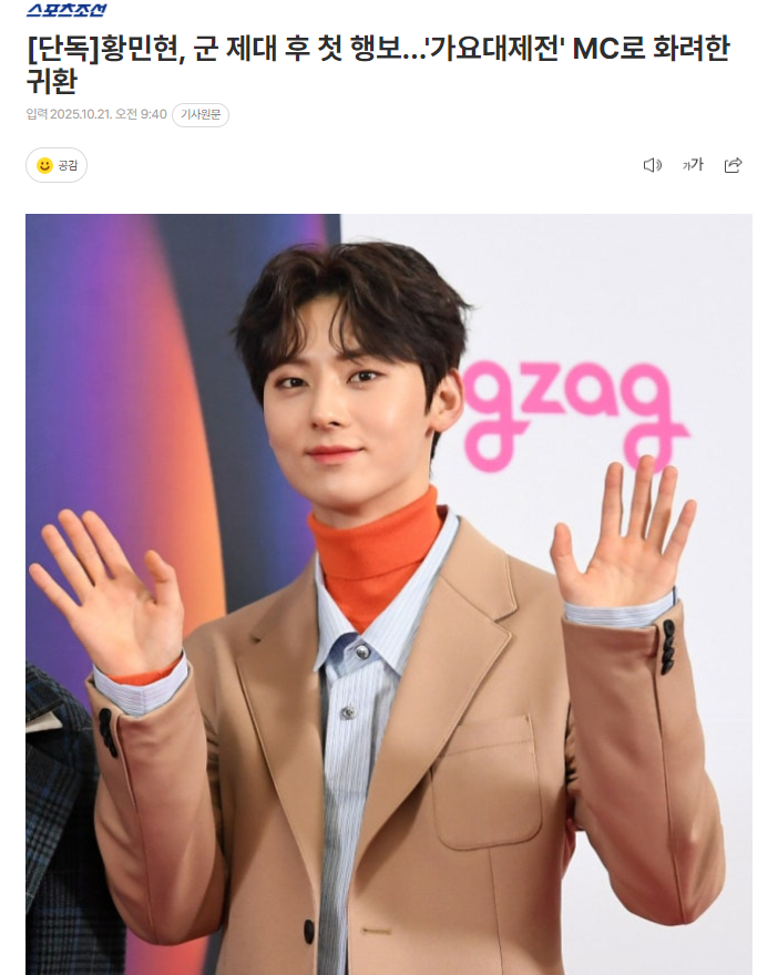 独家:黄旼炫将担任MBC《歌谣大祭典》MC