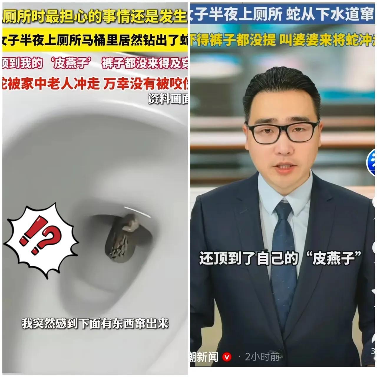 最担心的事还是发生了! 江苏无锡的周女士半夜上厕所, 竟被一条从马桶里钻出的蛇顶到,吓得直接跑回房。 这事儿看似离谱,其实并不罕见。 老小区的一楼住户尤其要注意,蛇可能顺着管道、下水道或墙缝爬进室内。 我觉得,光靠上厕所前冲一下马桶是远远不够的。关键是要从源头防蛇入户: - 定期检查并密封下水管道接口 - 安装防蛇网或单向阀 - 保持室内外环境整洁,减少蛇的藏身之处 还有个容易被忽略的点——马桶盖平时最好盖上,尤其是晚上。这样即使有不速之客,也能多一层屏障。 你觉得这些防蛇措施有用吗?有没有遇到过类似的惊魂经历?