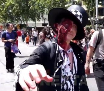 【一年一度的僵尸游行在智利首都举行】受“怪物聚集庆祝”座右铭的启发,参与者展示了