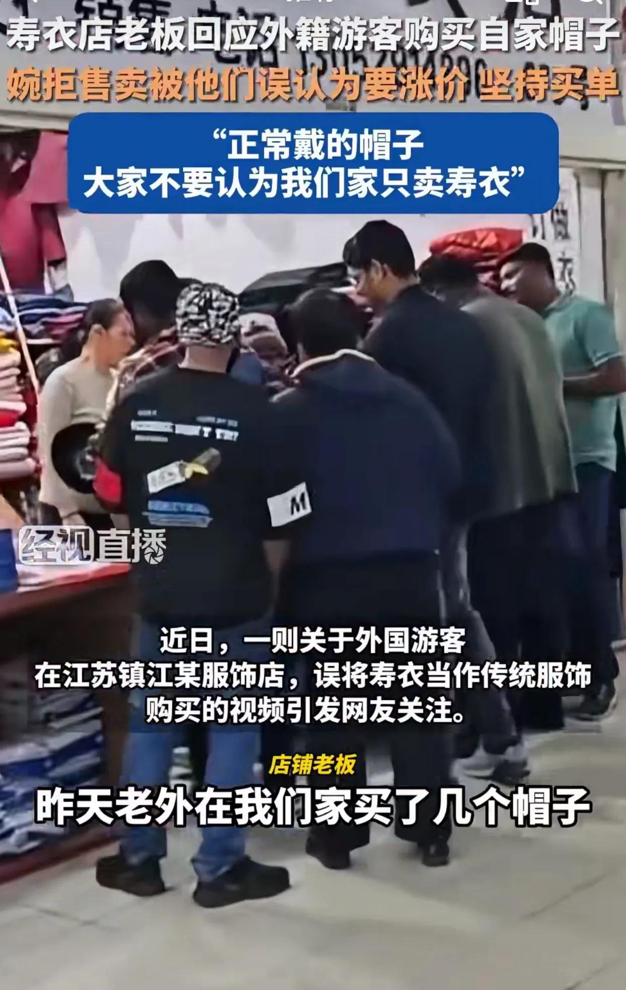 真是奇葩了!外国人把寿衣当成了唐装非要购买,如果你是店主你卖不卖? 昨日,江苏