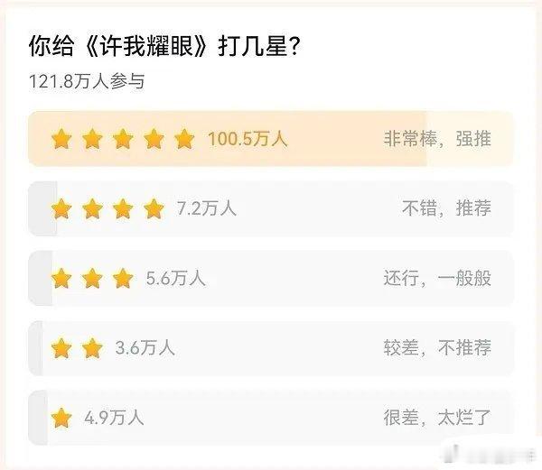 许我耀眼超100万人打5星 许我耀眼超100万人打5星 !!说明真的很好看,你看过《许我耀眼》了吗?