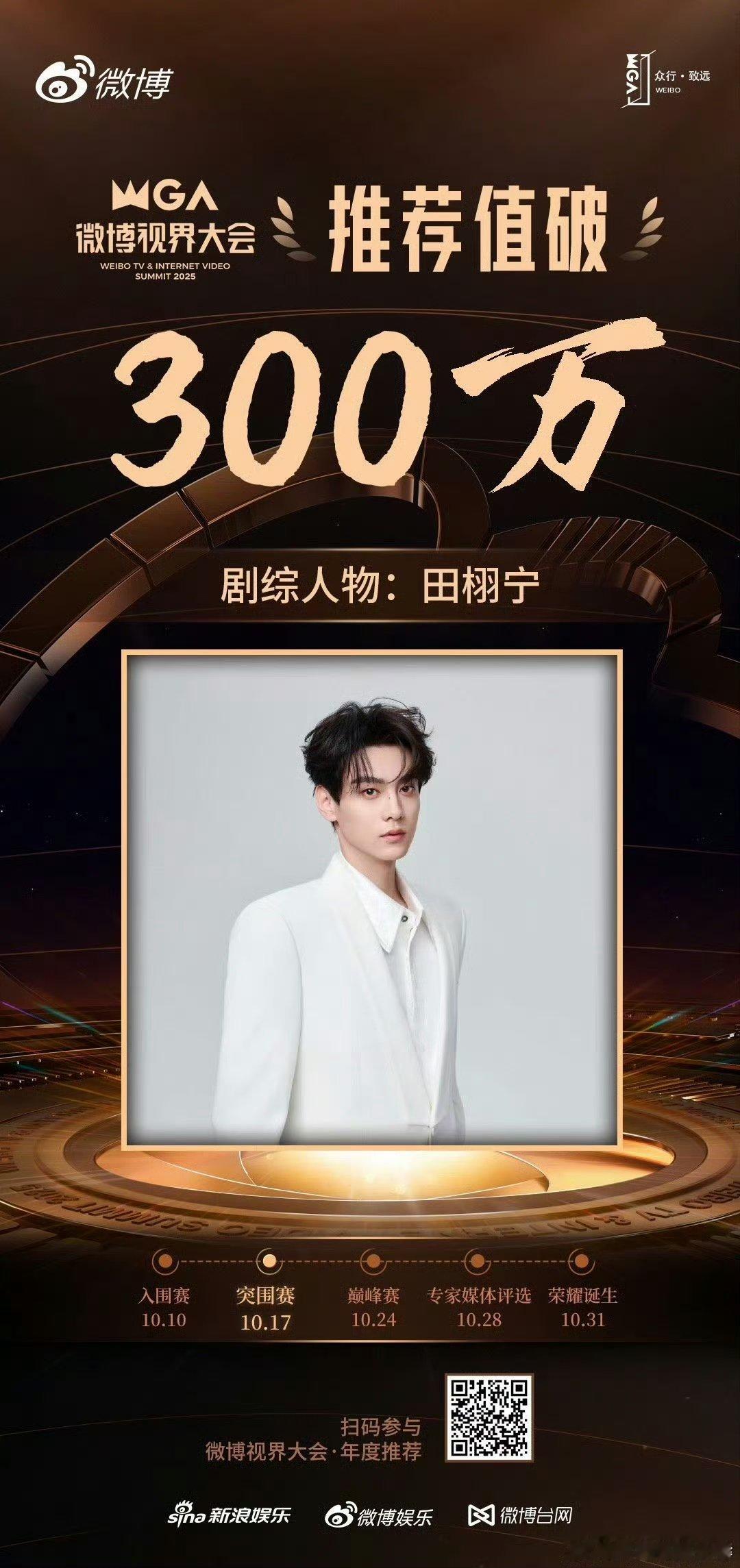 田栩宁视界大会推荐值破300万300万推荐值到手!田栩宁的吸引力也太能打了,不