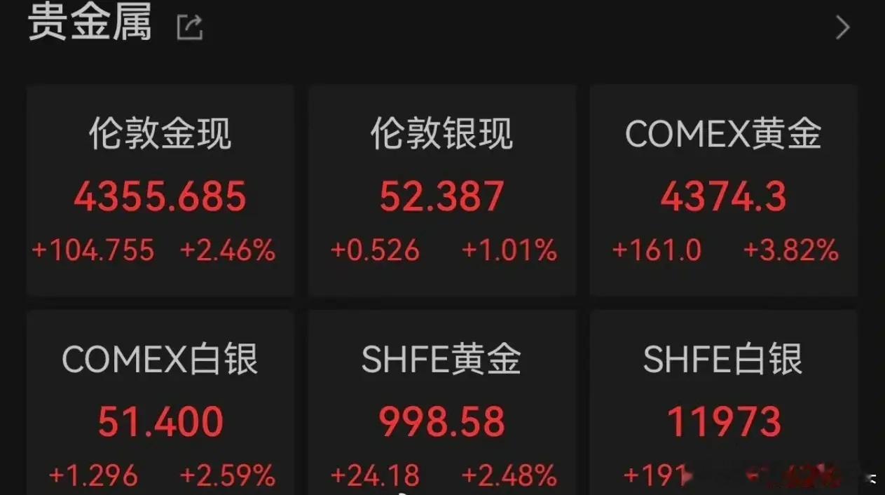 金价银价大反攻10月20日,COMEX黄金期货大涨3.82%,报4374.3美元/盎司;现货黄金涨2.48%,报4357.36美元/盎司,盘中均创历史新高。白银期货同步上扬,涨2.59%,报51.4美元/盎司。国内金饰克价也突破1289元。市场波动剧烈,黄金白银随后转跌,投资者需注意风险