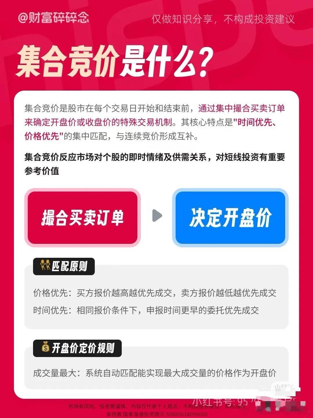 集合竞价是股市在每个交易日开始和结束前,通过集中撮合买卖订单来确定开盘价或收盘价的特殊交易机制。其核心特点是"时间优先、价格优先"的集中匹配,与连续竞价形成互补。股票[超话]