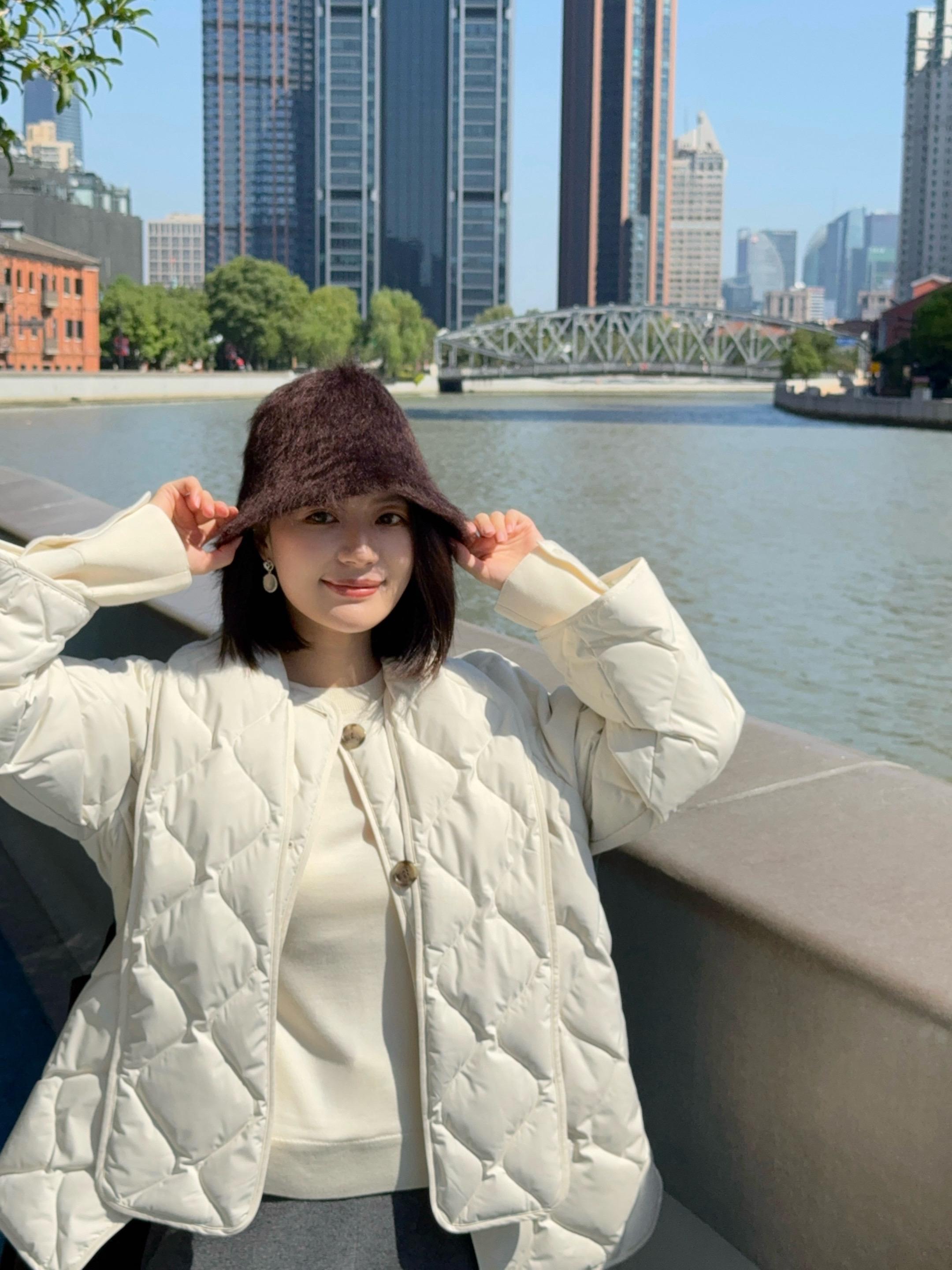 《溪畔晴光》素衫裁取晴光软,牛仔轻笼玉色弯。石岸风拈芦穗雪,回身笑落一溪